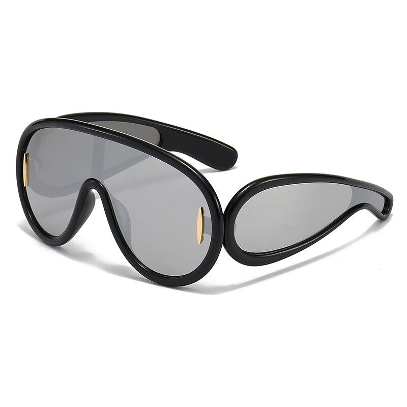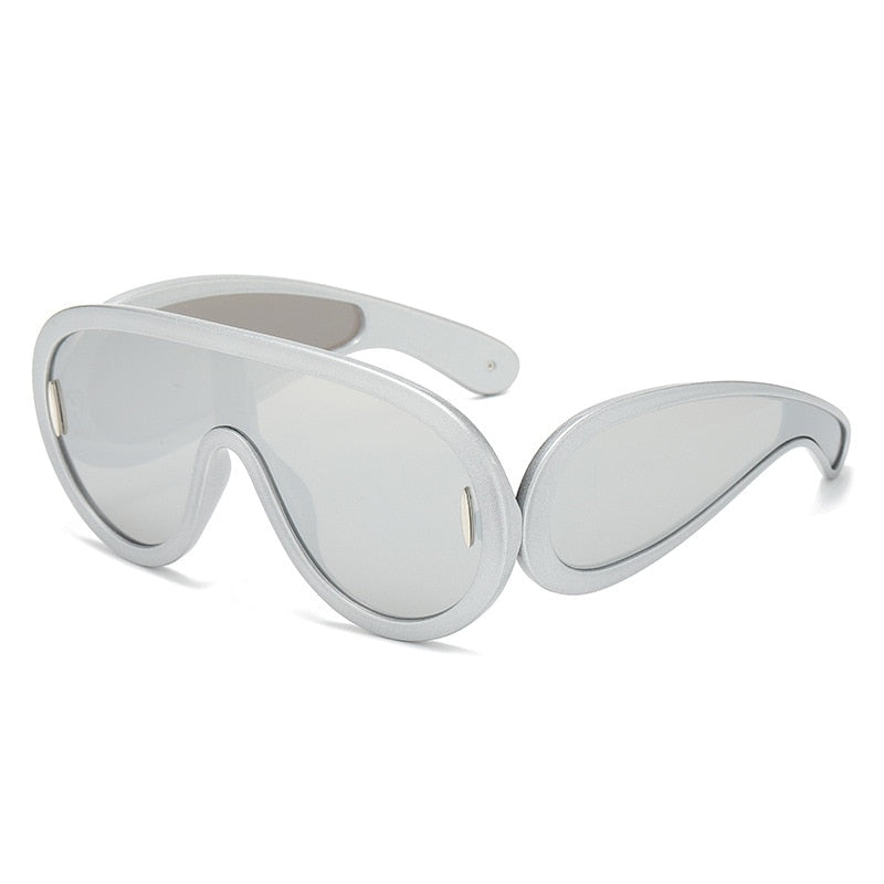 Y2K Vintage Brand Designer Oversized Pilot Sunglasses Women For Men Fashion Mirror Shades Trendy Punk One Piece Cool Sun Glasses
