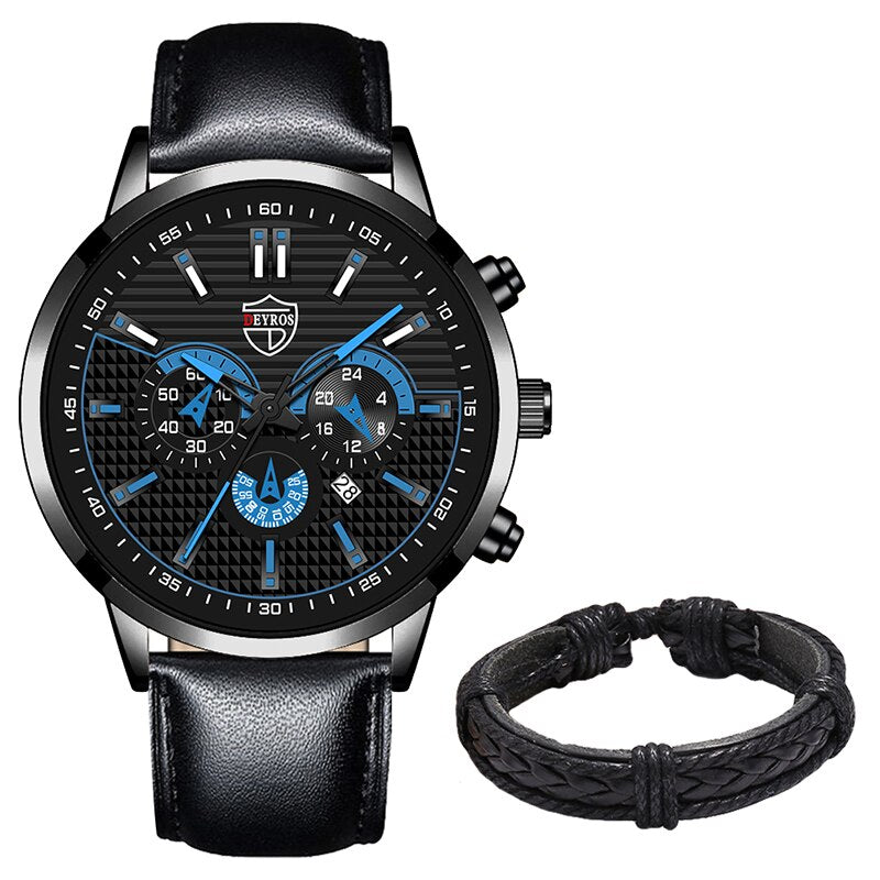 2022 reloj hombre Top Mens Business Leather Quartz Wristwatch Luxury Fashion Men Watches Calendar Date Bracelet Strap