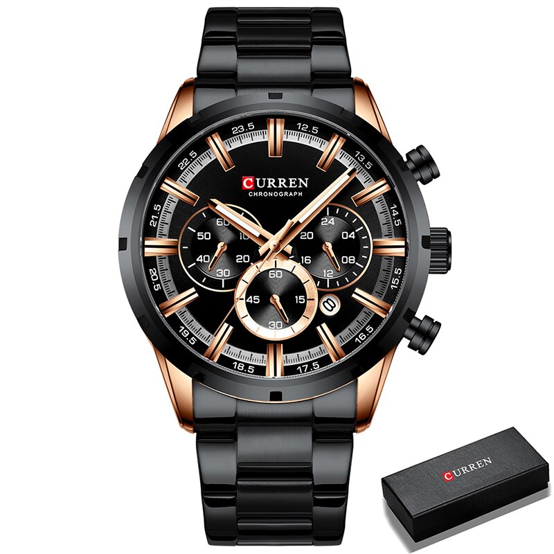 New CURREN Top Brand Luxury Fashion Mens Watches Stainless Steel Chronograph Quartz Watch Men Sport Male Clock Relogio Masculino