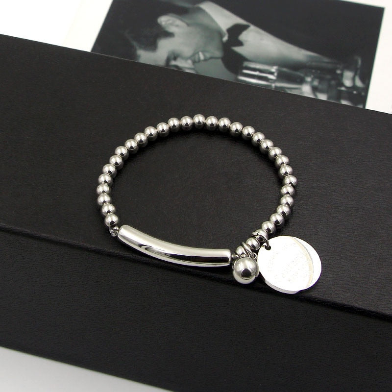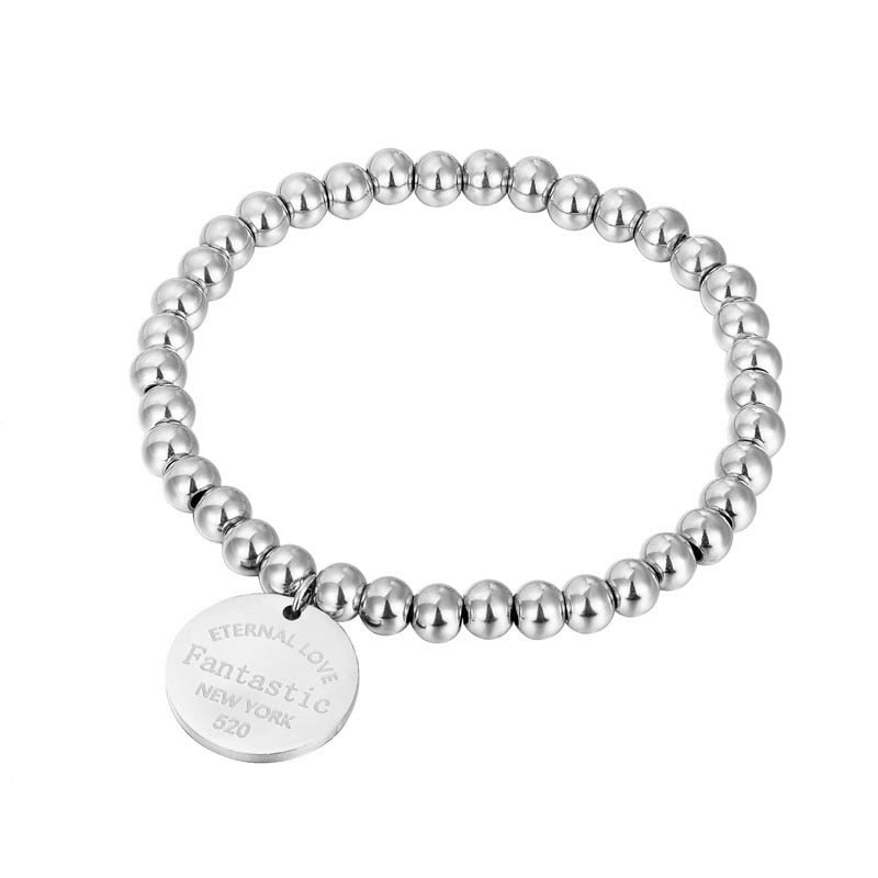 Stainless Steel Ball Beads Bracelet For Women Circle Tag Charm Stretch Strand Bracelet "Fantastic Eternal Love New York" K033