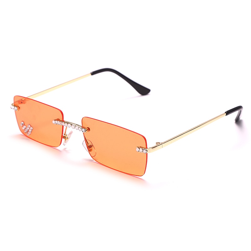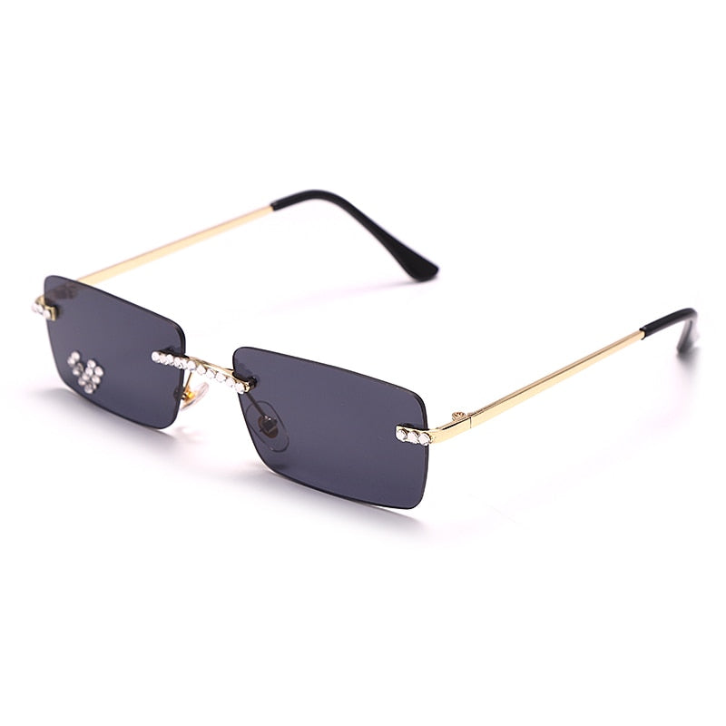 Rimless Diamond Sunglasses Women 2021 Rectangle Steampunk Sun Glasses Crystal Vintage Rhinestone Glasses Eyewear UV400 Oculos