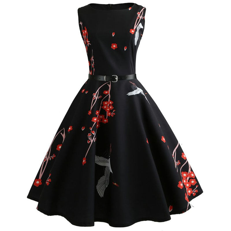 SPECIFICATIONSWaistline: Natural FactorsStyle: vintageStyle: Casual Elegant Vintage DressSleeve Style: RegularSleeve Length(cm): SleevelessSize: S/M/L/XL/XXLSilhouette: A-LINESeason: SummerProfile Type: APattern Type: PrintOrigin: Mainland ChinaNeckline: O-NeckModel Number: WQ1020Material: PolyesterMaterial: CottonLength:...