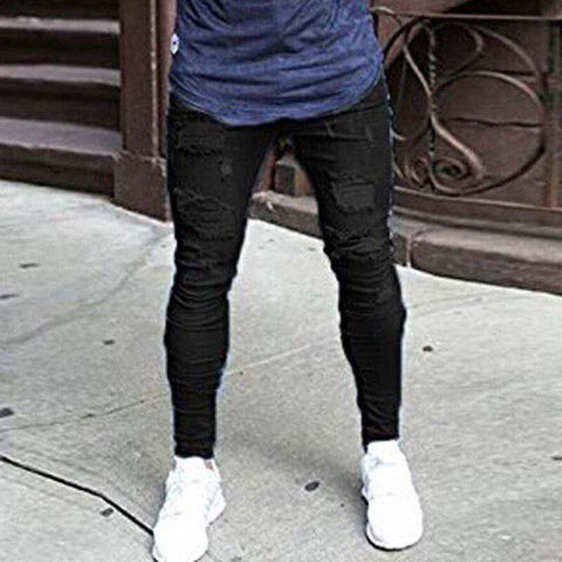 Pants Men Jeans Skinny Hip Hop Sky Blue Jeans Mens Stretchy Ripped Slim Fit Denim Destroyed Hole High Quality Jean Streetwear