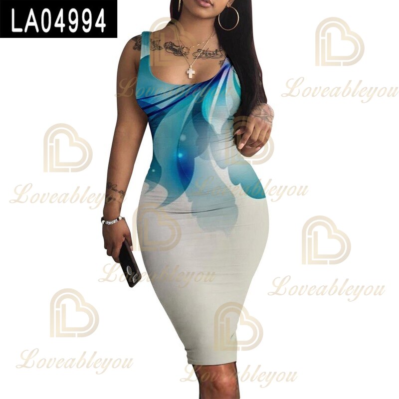 Robe Femme Women Lady V-Neck Pencil Dress Solid Color Backless 3D Print Bodycon Slim Slip Dress Summer Beach Sundress