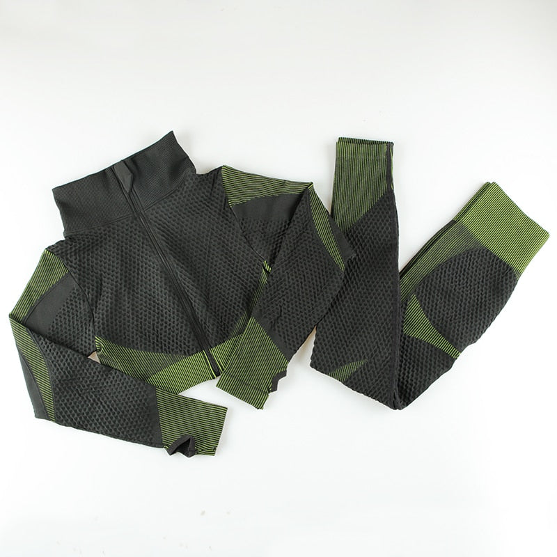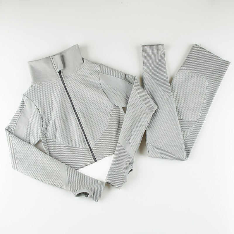 Seamless Women Gym Set Yoga Set 2/3 Pieces Set Zipper Long Sleeve ShirtsHigh Wait Leggings Sport Clothes Sport Suit