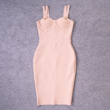 Women Summer Fashion Sexy V Neck Backless Button Red Black White Bodycon Bandage Dress 2022 Designer Evening Party Dress Vestido