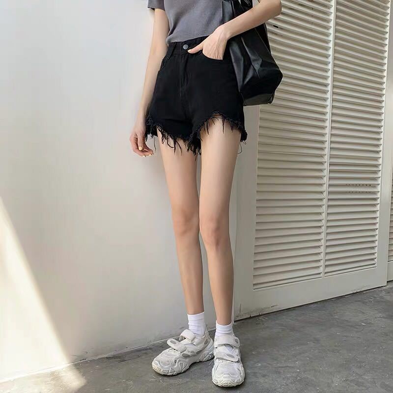• High Waist Denim Shorts Women Summer Pocket Tassel Hole Ripped Jeans Short Female Femme Short Pants