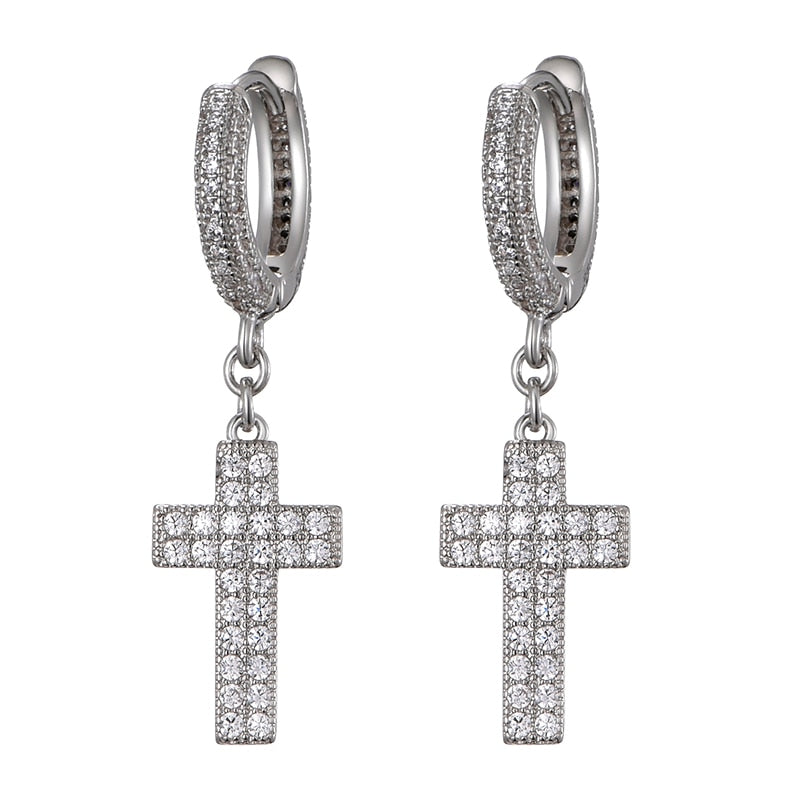 • Hip Hop Cubic Zirconia Bling Iced Out Cross Earring Copper Earrings for Men Women Rock Jewelry