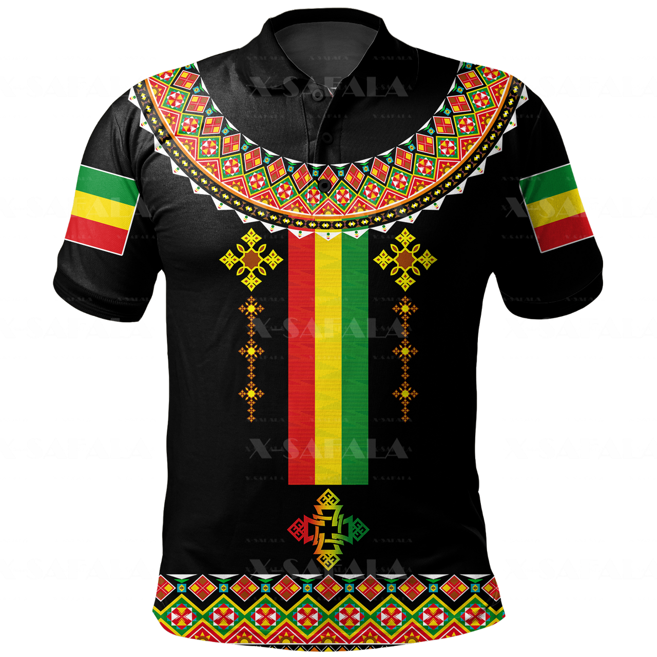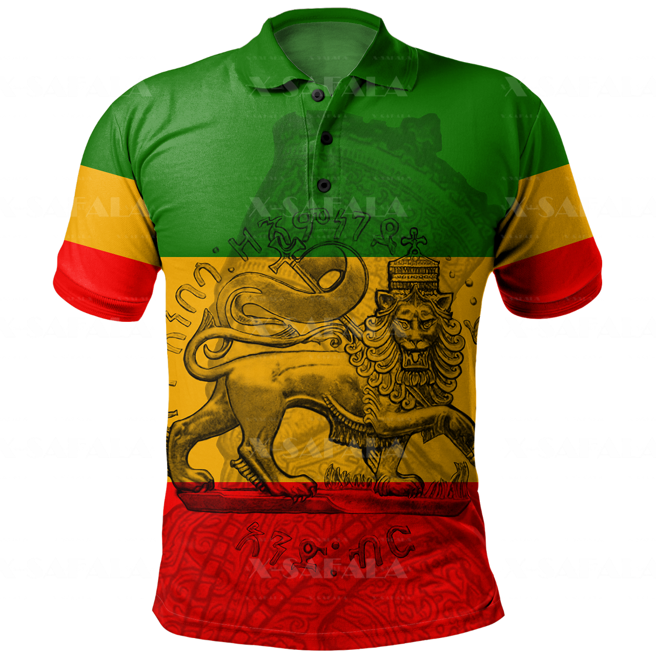 Lion Of African Ethiopian Nation Reggae 3D Print Polo Shirt Men Collar Short Sleeve StreetWear Casual Tops New Summer Clothing