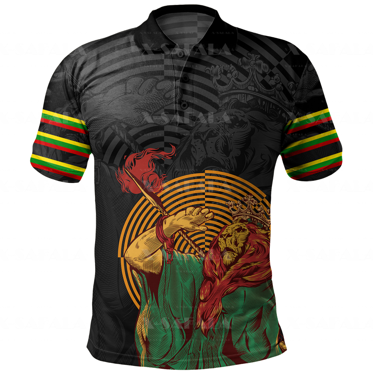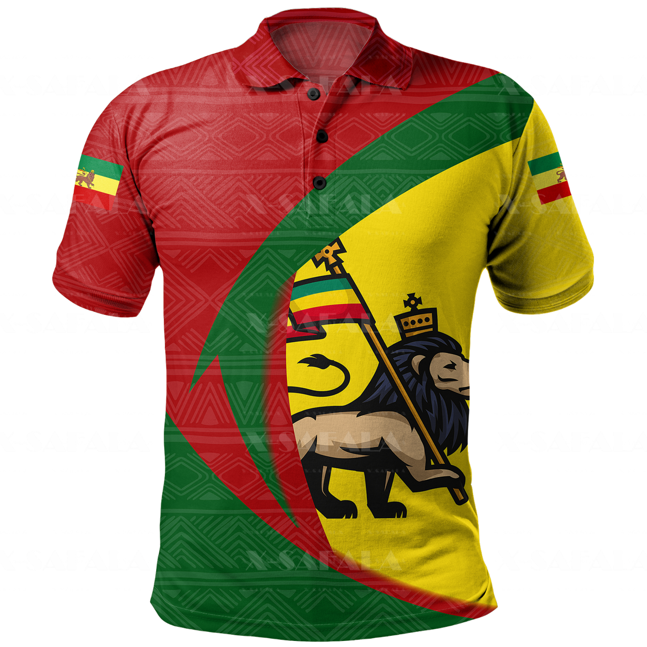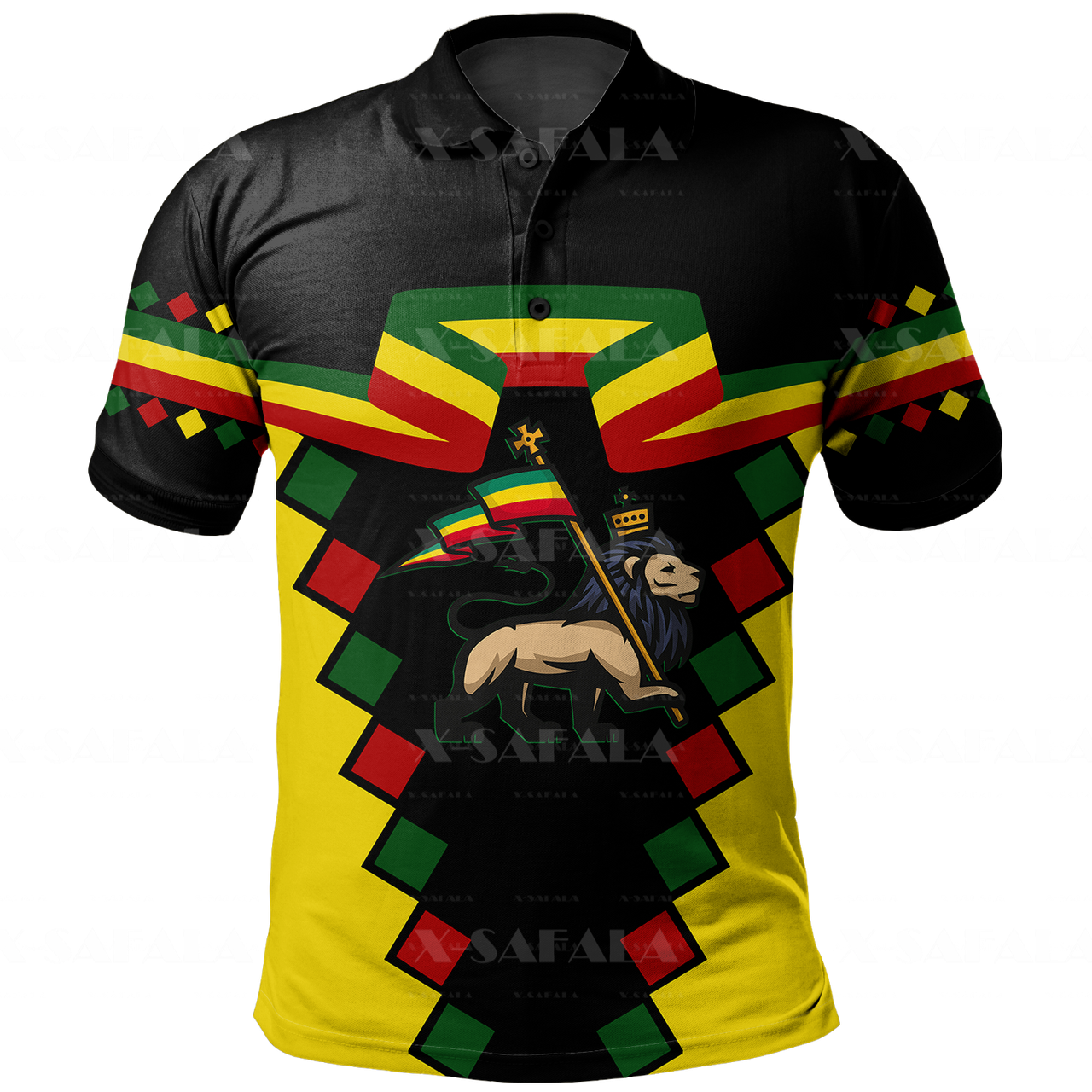 Lion Of African Ethiopian Nation Reggae 3D Print Polo Shirt Mens Collar Short Sleeves StreetWear Casual Tops New Summer Clothing