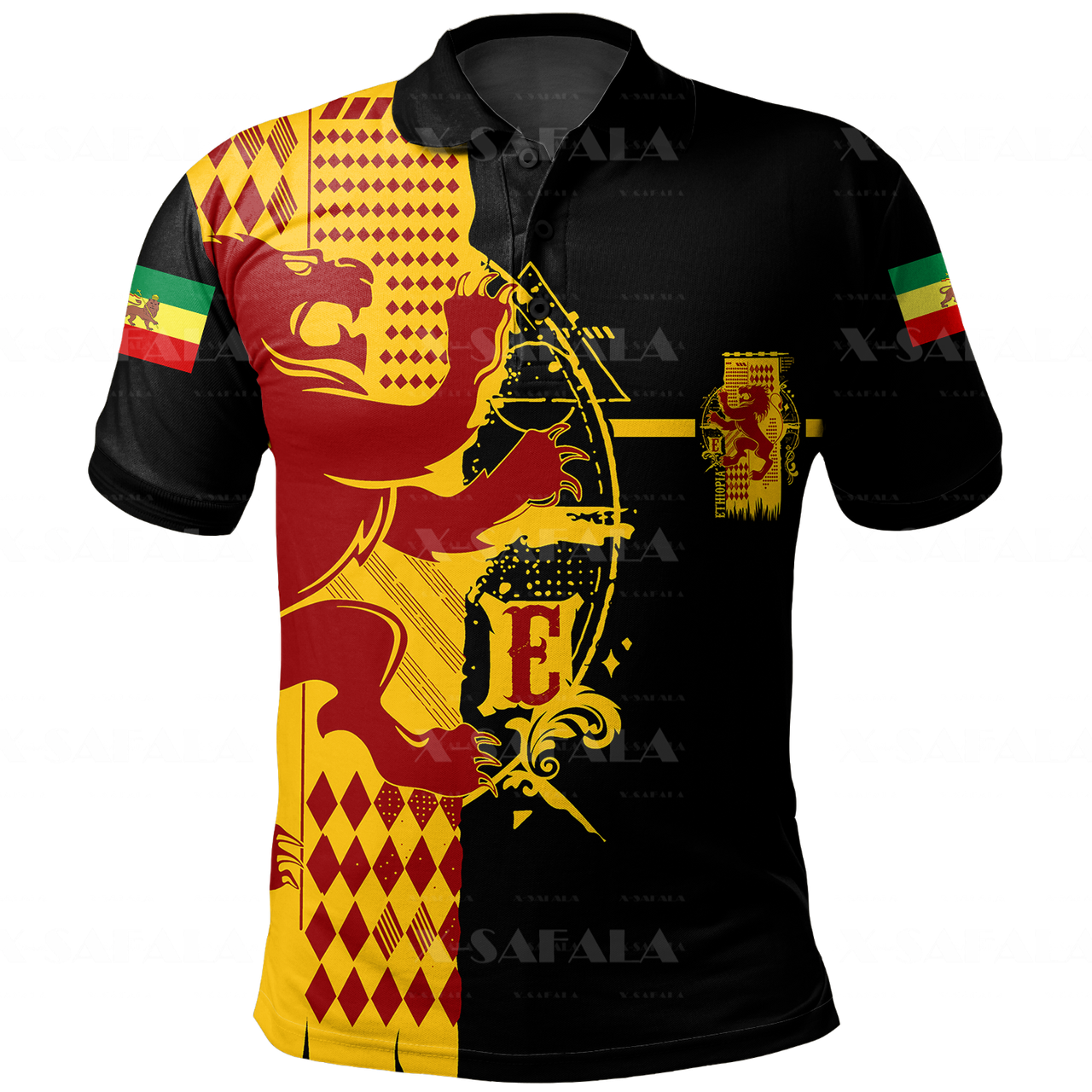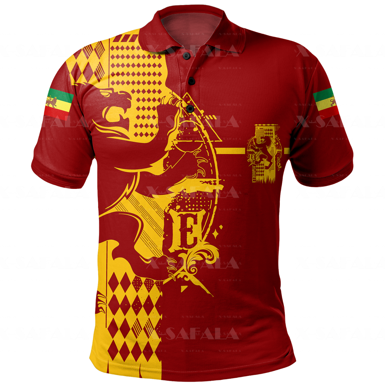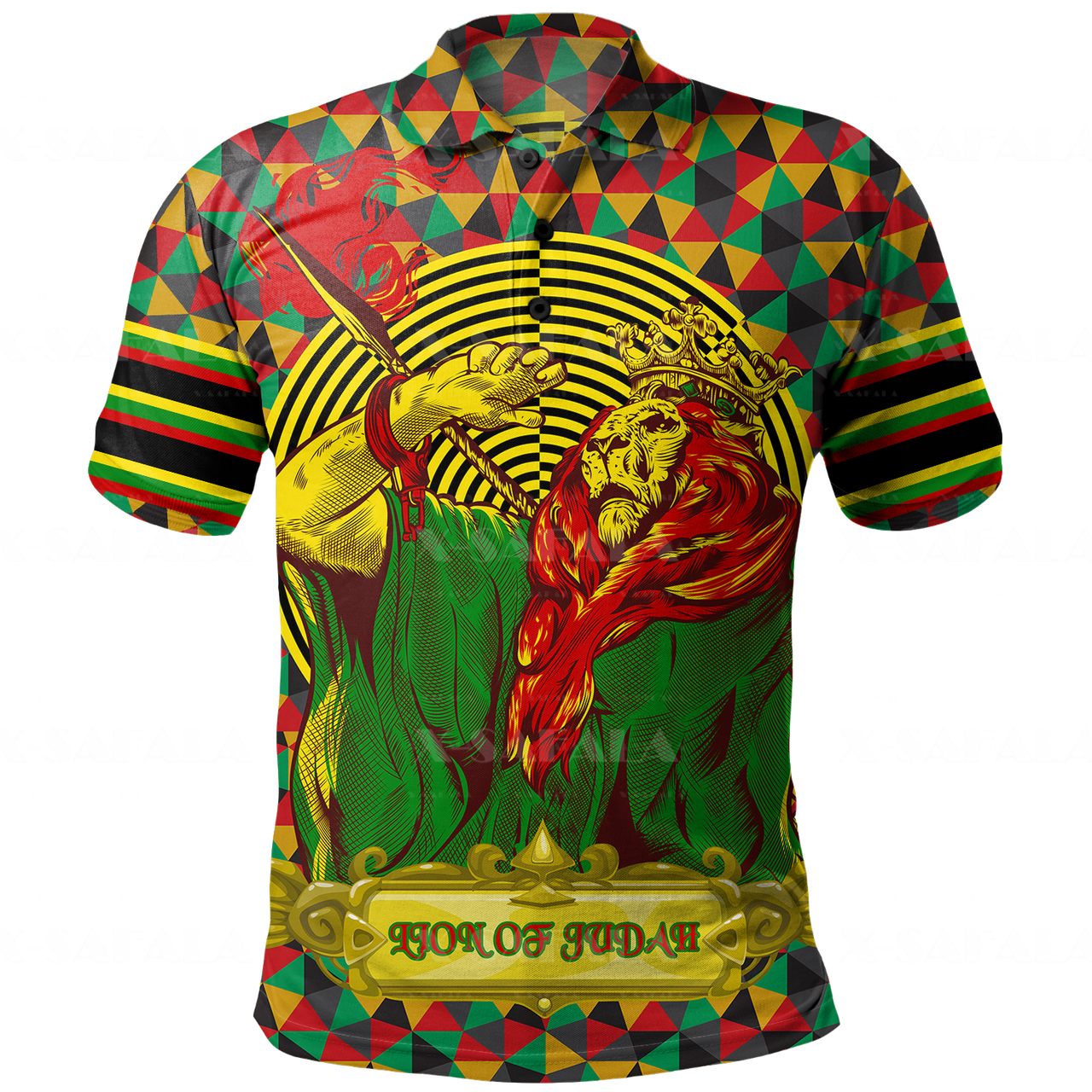 Lion Of African Ethiopian Nation Reggae 3D Print Polo Shirt Mens Collar Short Sleeves StreetWear Casual Tops New Summer Clothing