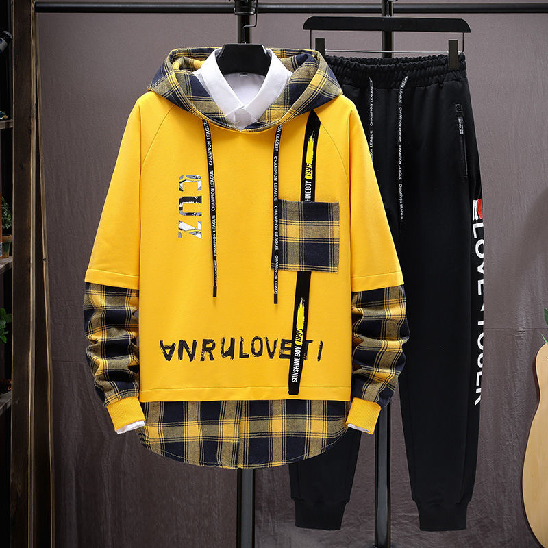 2022 Men Tracksuit Sets Korean Fashion Streetwear Hoodies+Sweatpants