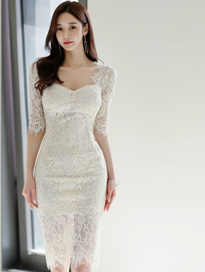 SPECIFICATIONSWaistline: empireStyle: Office LadySleeve Style: RegularSleeve Length(cm): halfSilhouette: SheathSeason: SummerRelease Date: Summer 2022Pattern Type: SolidOrigin: Mainland ChinaNeckline: Square CollarModel Number: CX2718Material: LaceGender: WOMENDresses Length: Knee-LengthDecoration: LaceClosure...