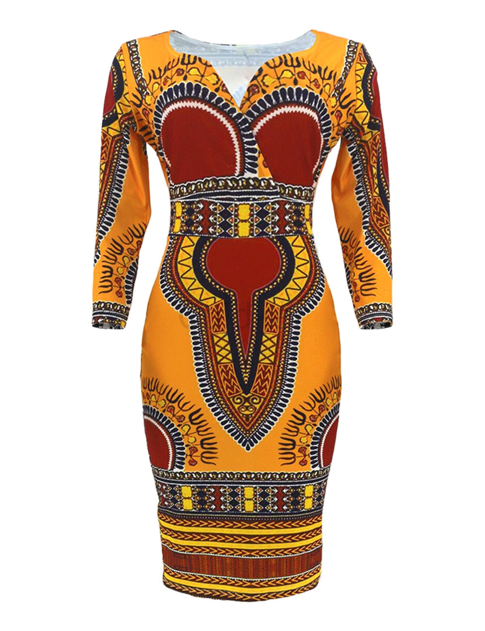 Sexy African Dresses for Women Cosplay Costume Dashiki Print Tribal Ethnic Fashion V-neck Dress