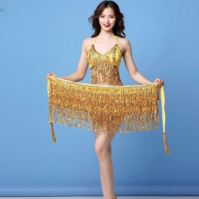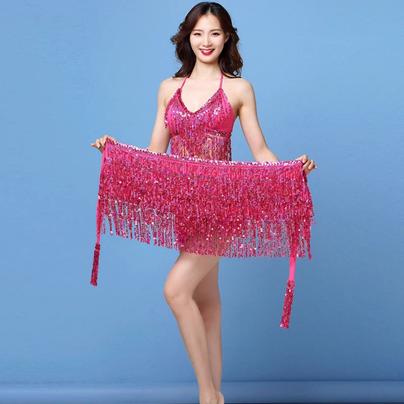• Bellydance Hip Scarf Sequins Fringe Dancewear Shawl Oriental Dance Scarf Belt Costumes Wrap Waist Performance Multicolor Women