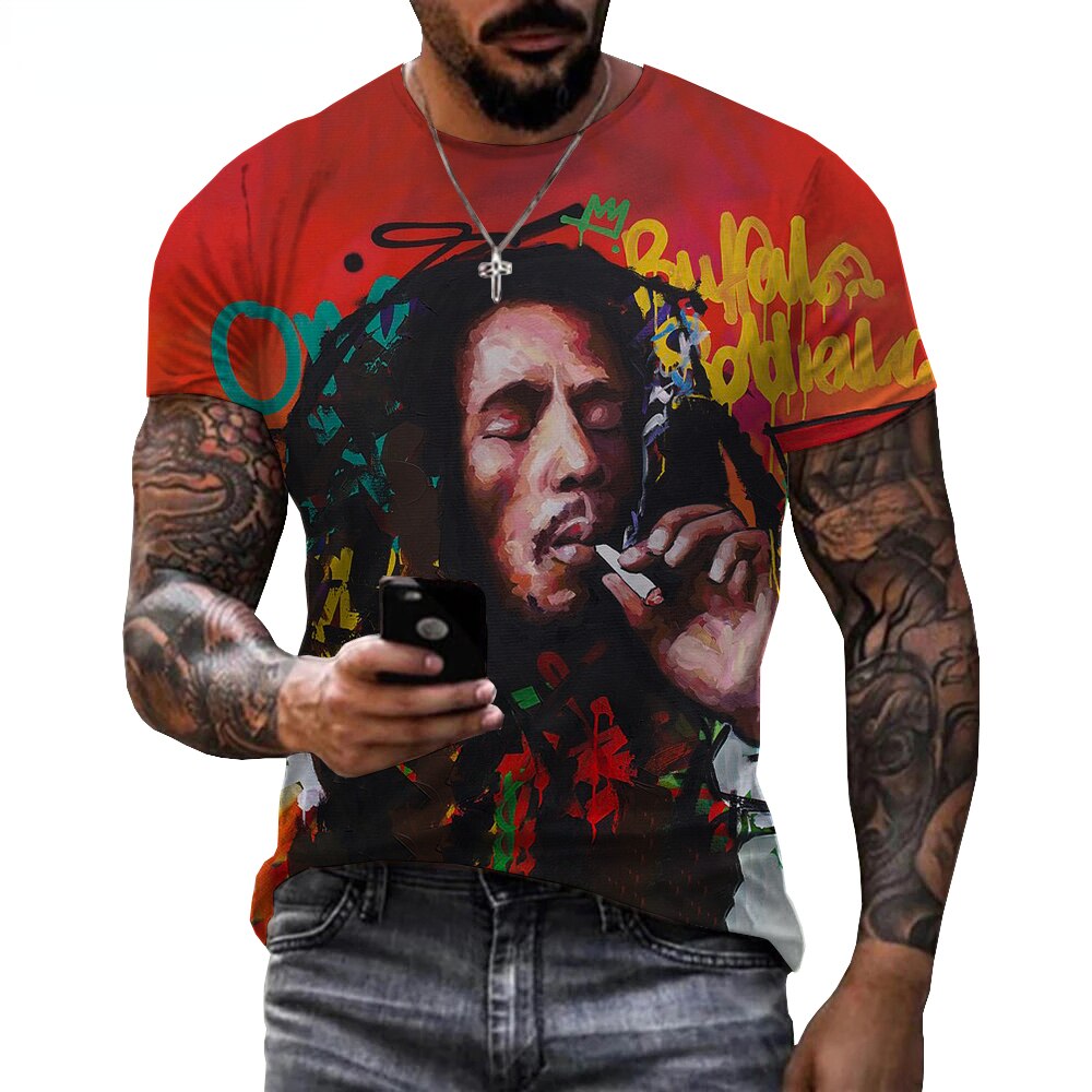 SPECIFICATIONSTops Type: TeesTemporada de uso: summerStyle: CasualSleeve Length(cm): ShortPlace Of Origin: China (Mainland)Pattern Type: CartoonPattern: Bob MarleyOrigin: Mainland ChinaOrigen: CN(Origen)Material: PolyesterMaterial: SpandexLongitud de la manga (cm):...