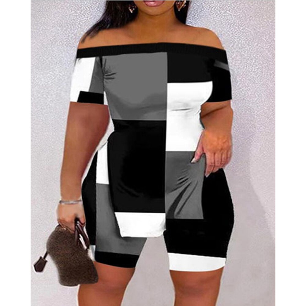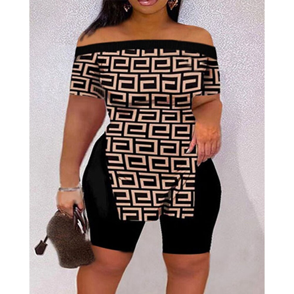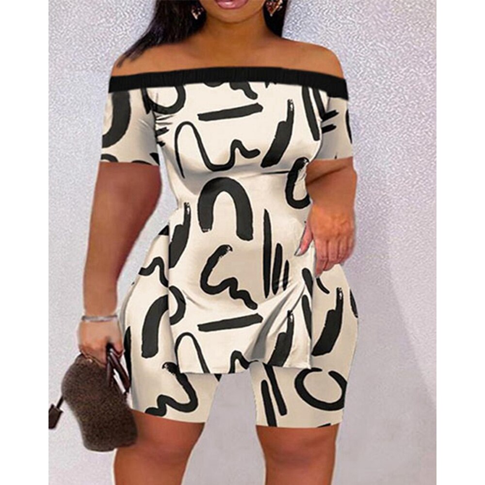 Casual Summer Women Tie Dye Print Off Shoulder Hem Split Top & Shorts Sets Short Sleeve 2 piece Suit Sets Outfits Streetwear