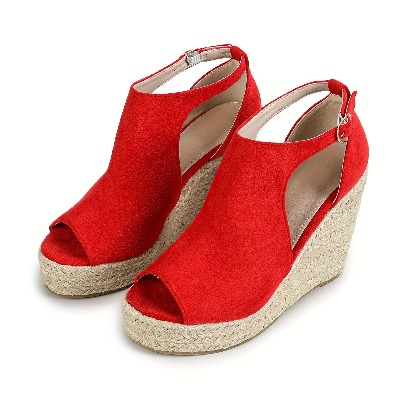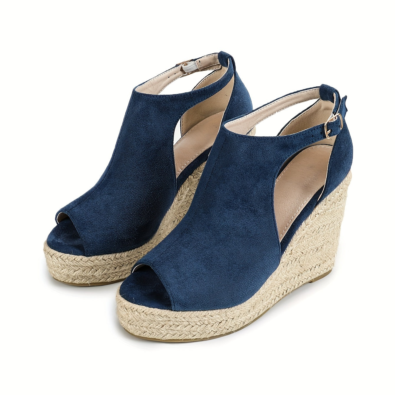 • Chic Espadrille Wedge Sandals - Stylish Peep Toe with Cut-out Detail, Adjustable Buckle Strap, Stiletto Heels, and Comfortable Platform - Perfect Trendy Footwear for Your Summer Holiday