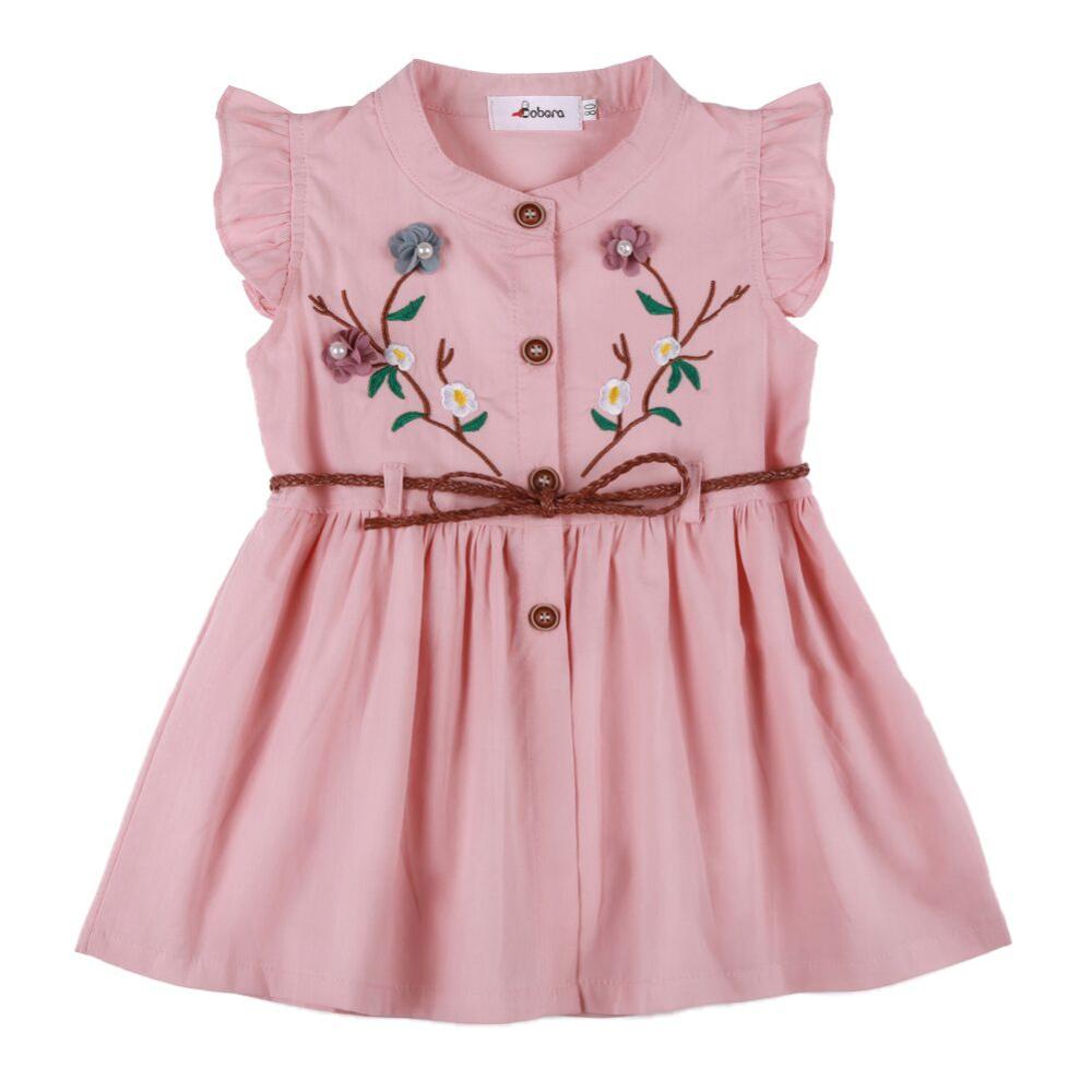 • Children Summer Sleeveless Girls Cute Sweet Cotton Vest Flower Peach Embroidered Princess Dress