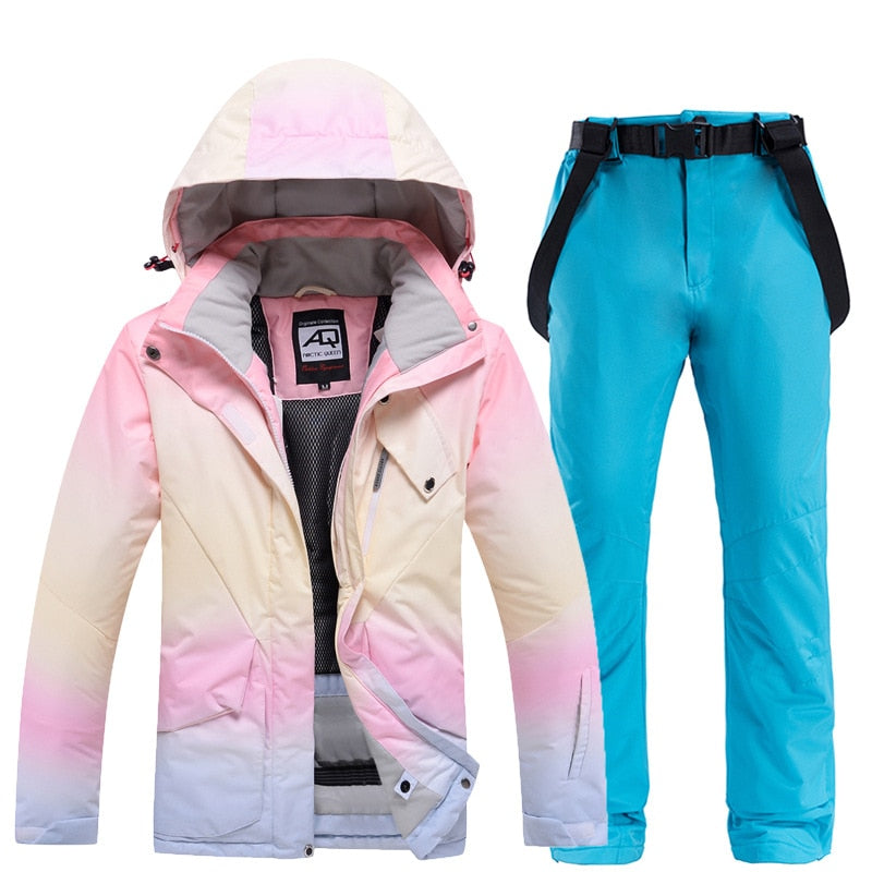 2022 New Fashion Color Matching Ski Suit Women Windproof Waterproof Jacket and Pants Suit