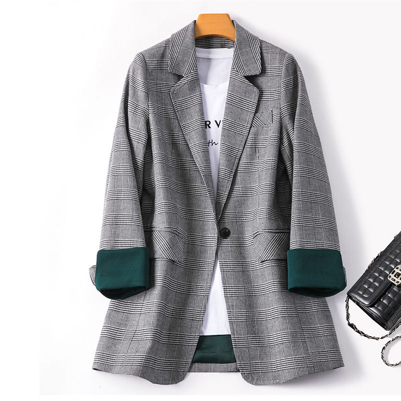 2022 New Fashion Business Interview Plaid Suits Women Work Office Long Sleeve Blazer