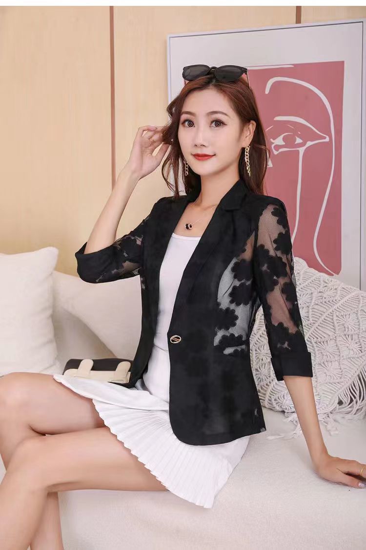 2023 Summer Women Thin Cardigan Sun Protection Clothing Hollow Lace Slim Shawl Office Ladies Work Wear women blazers and jacket