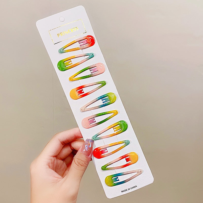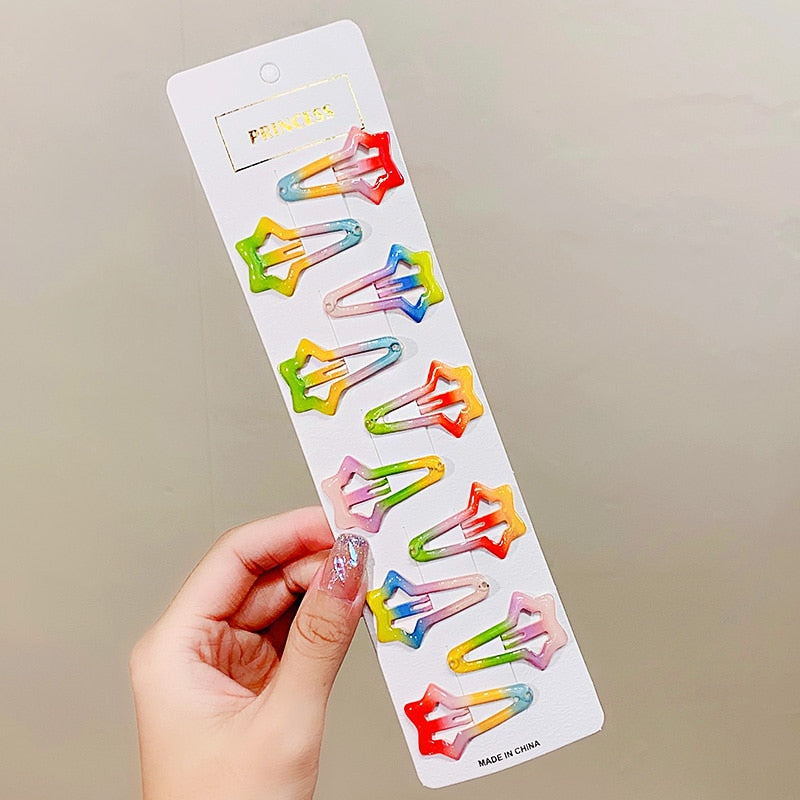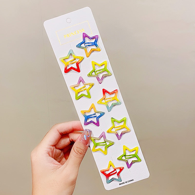 10pcs/set Cute Colorful Star Waterdrop Shape Hair Clips For Girls Children Lovely Hair
