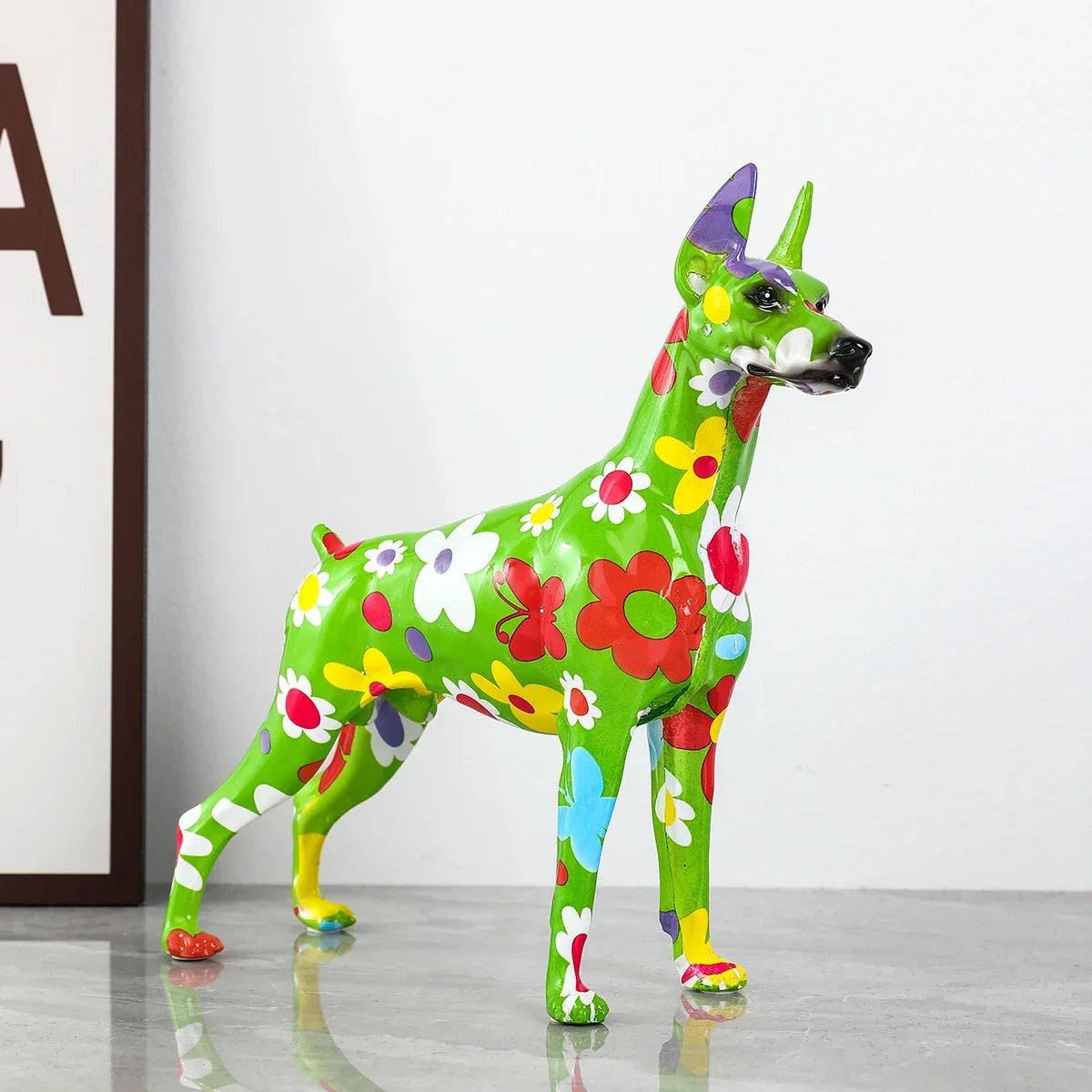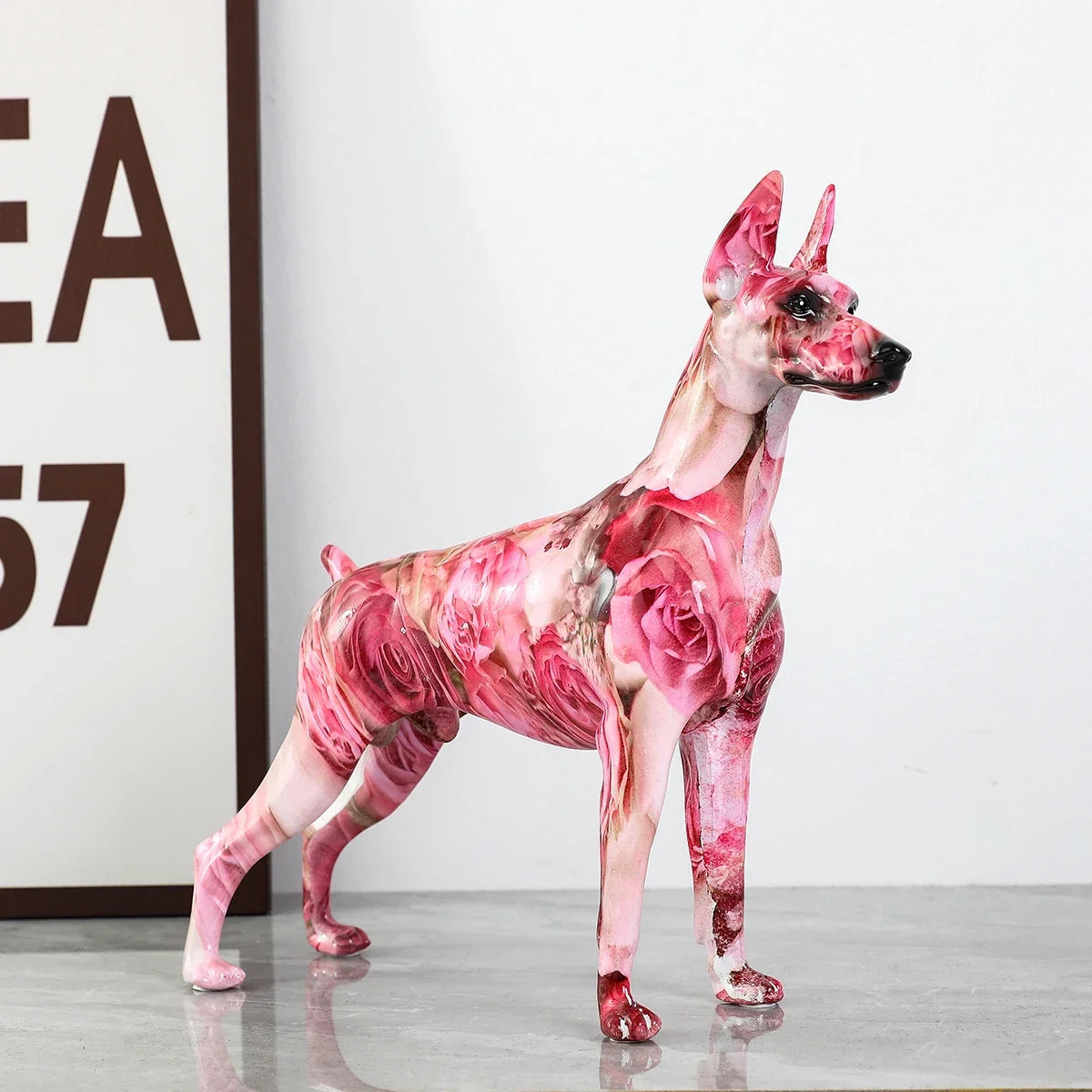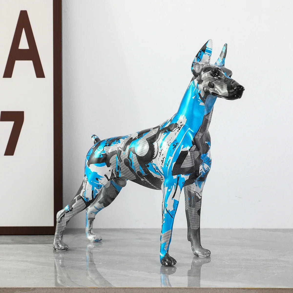 Simple Creative Pet Handle Graffiti Color Doberman Dog Statue Decorations Home Entrance Wine Cabinet Office Decor Resin Crafts
