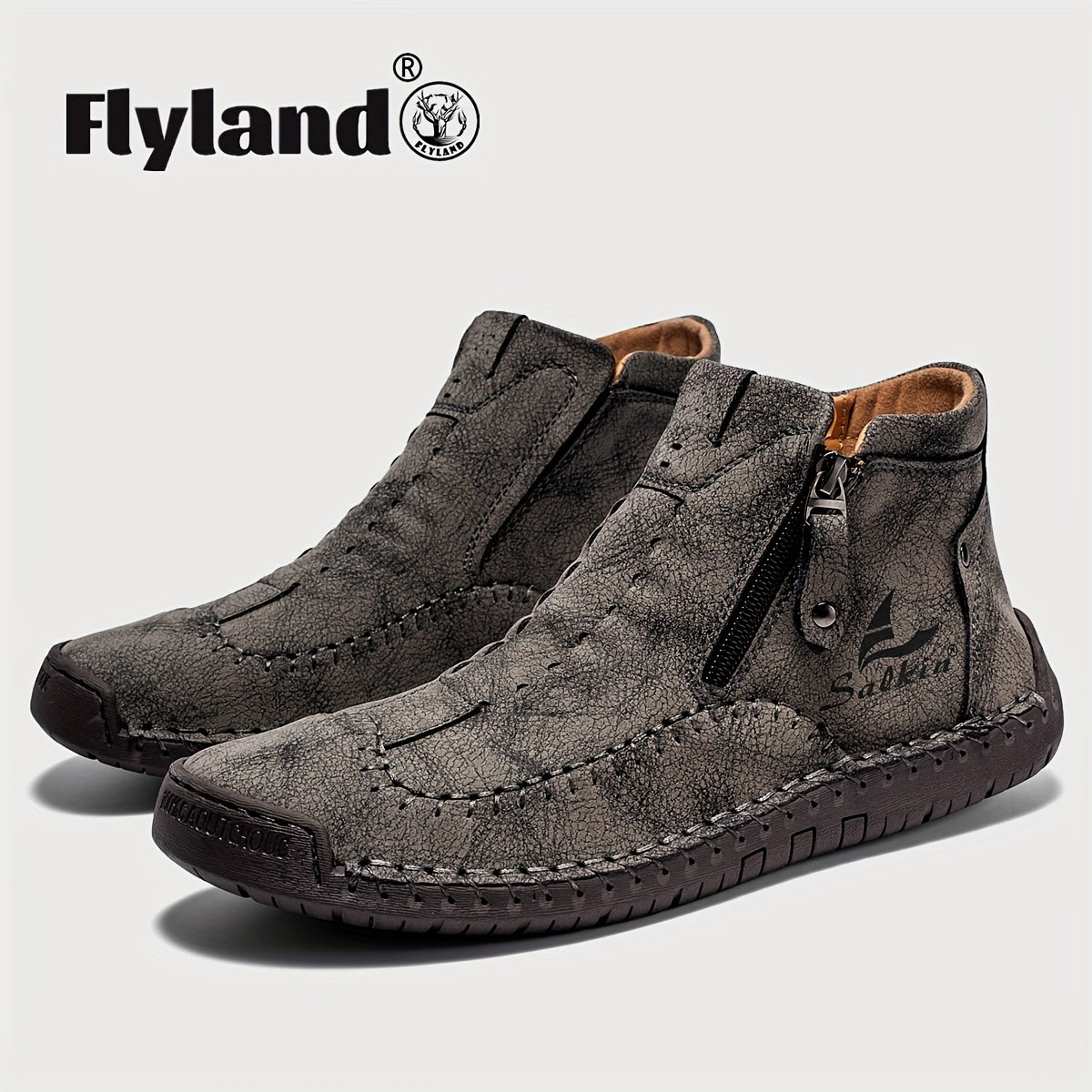 [Comfortable Wear-resistant Ankle Boots] FLYLAND Men's Ankle Boots Vintage Style Comfortable Wear-resistant Non-slip Stitch Boots Outdoor Shoes For Hiking Trekking Climbing