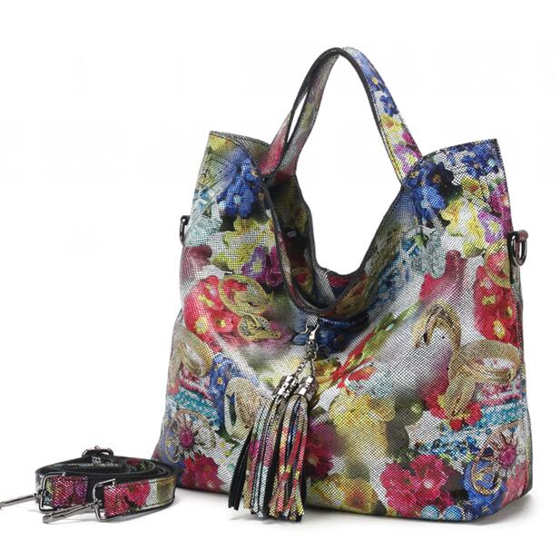 Designer Floral Women's Tote Handbags Elegant Flowers Colorful Hobos PU Leather Bags New