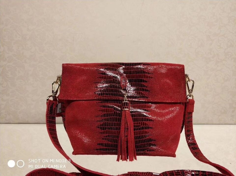 Arliwwi Brand New Quality Serpentine Grain Suede Cowhide Classical Designer Genuine Leather Handbags With Elegant Tassel GB01