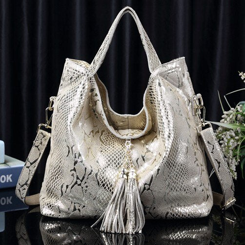 BIG SALE* High Quality Serpentine Pattern Women Luxury Shoulder Bags With Tassel Pendant PU Leather Messenger Handbags GPY01