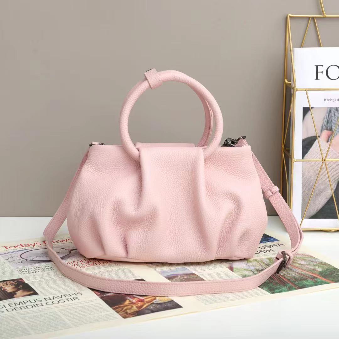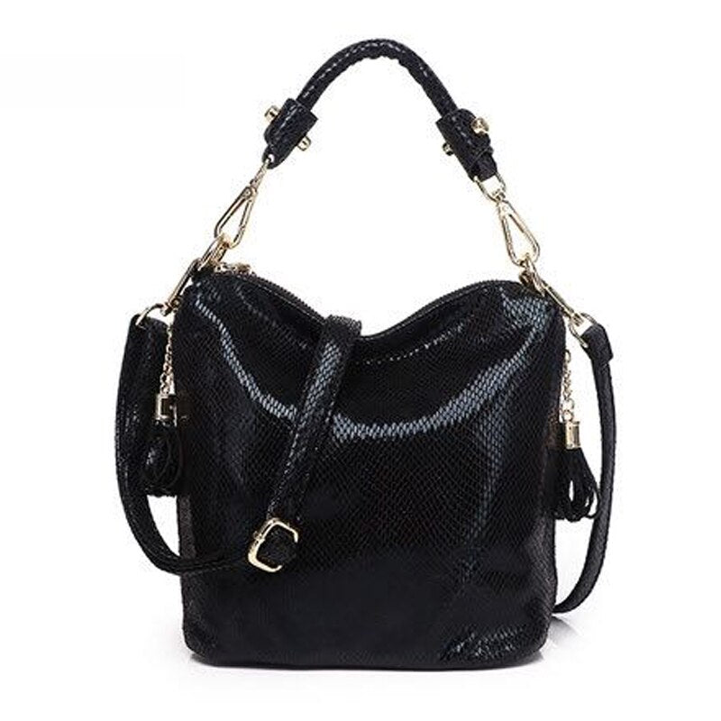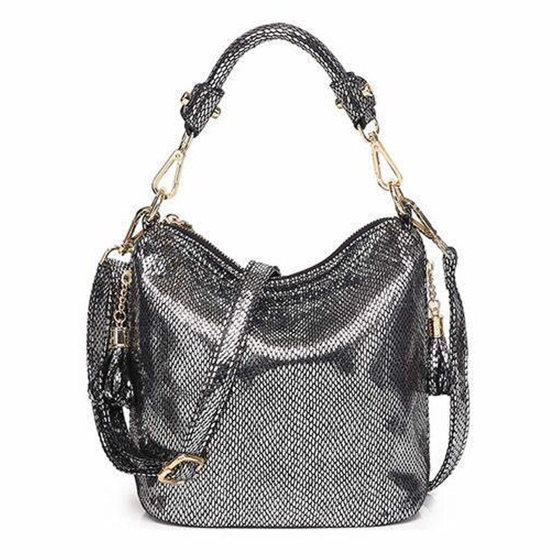 Real Leather Luxury Handbags Women Shiny Embossed Coating Bucket Shoulder Bags Fashion New