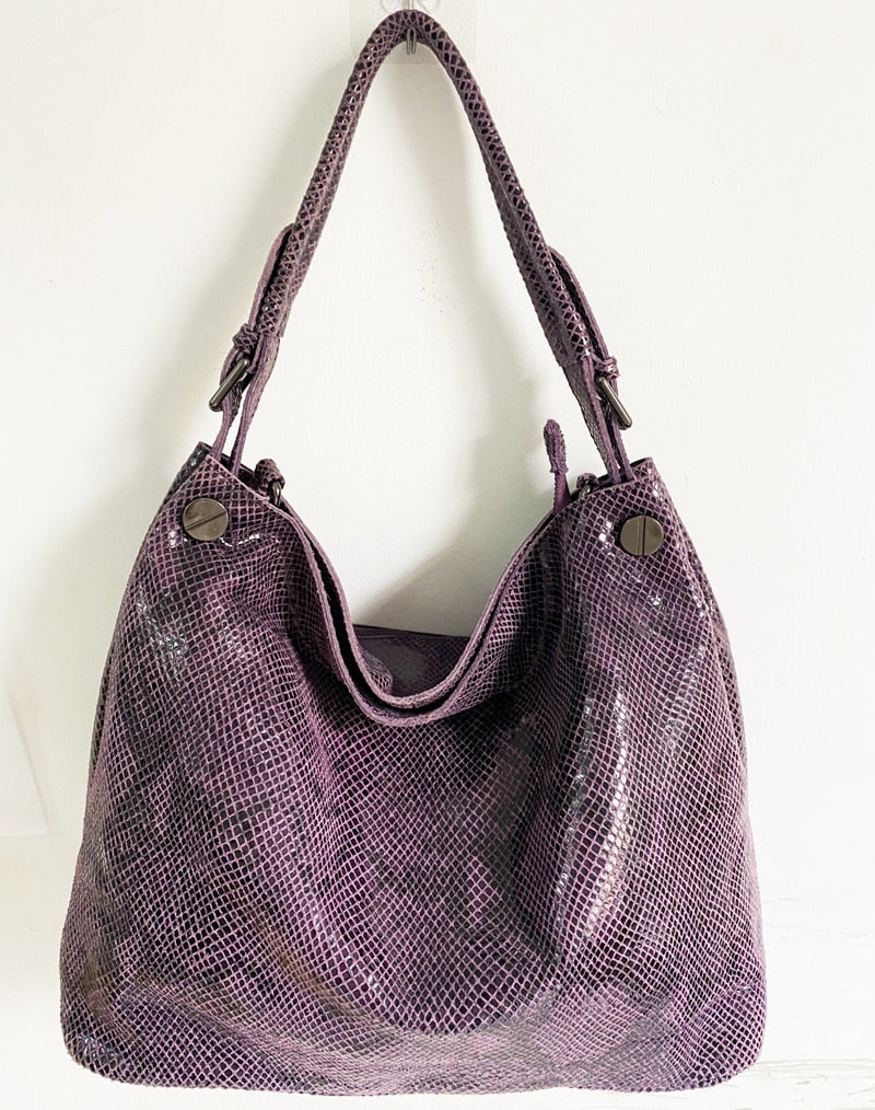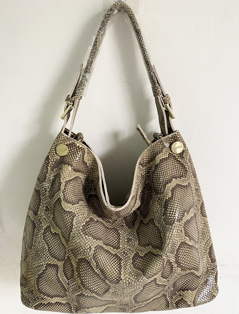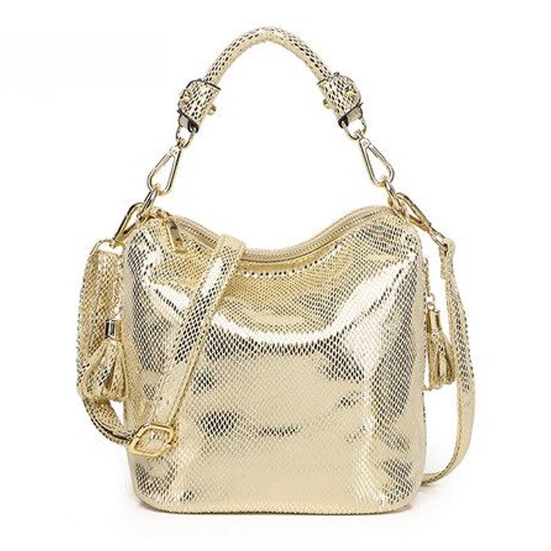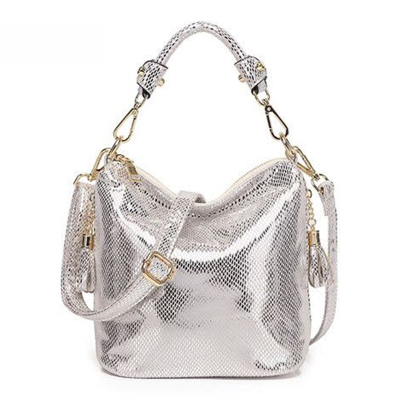 100% Real Leather Shoulder Bag Metallic Color Serpentine Embossed Handbag Female Casual Stylish Tote Hobos Cross Body Bags New