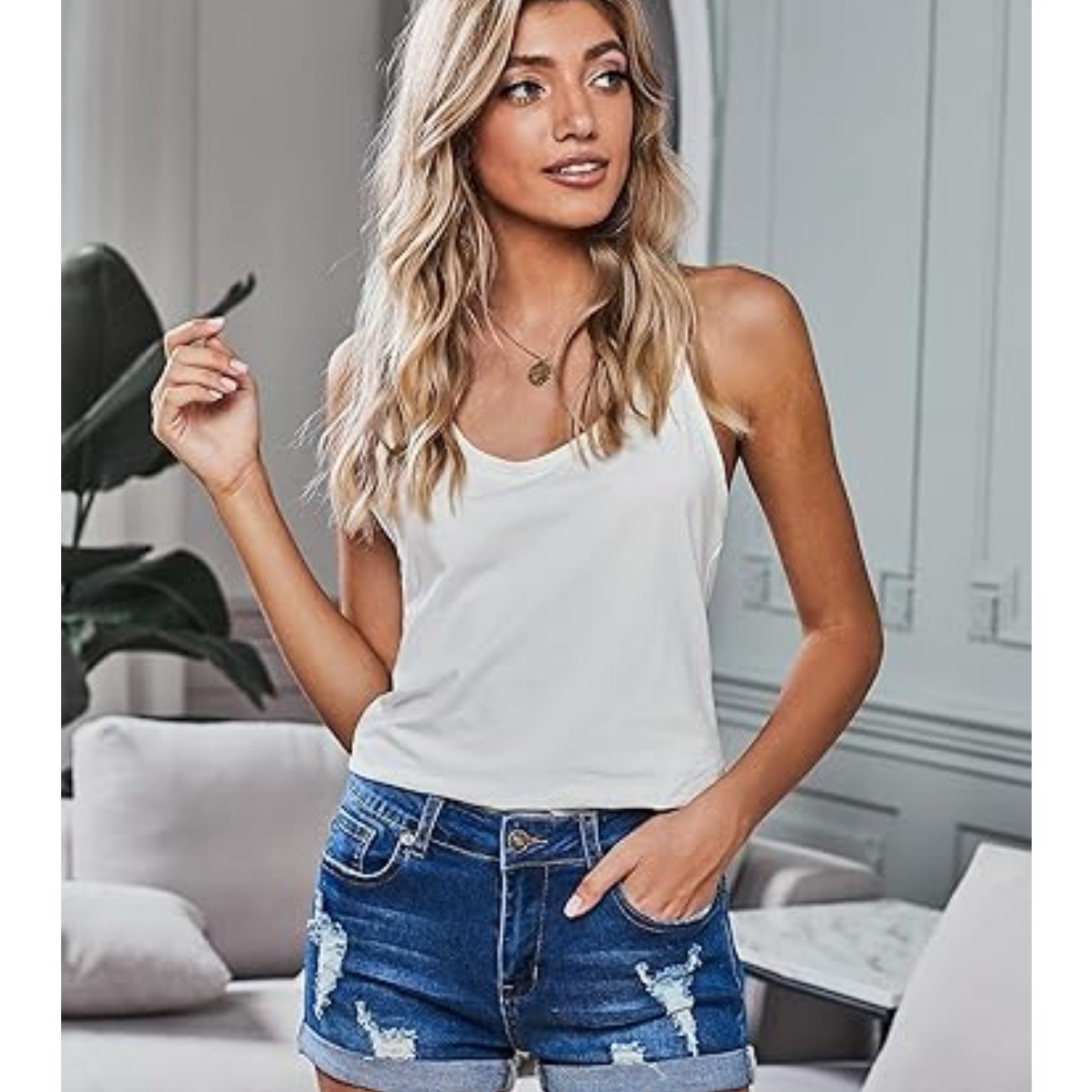 Sexy Light Blue Ripped Denim Shorts - Mid Rise, Skinny Fit, Frayed Hem, Crossover Stepped Waist, Casual Summer Jeans for Women - Perfect for Warm Weather, Outdoor Activities, and Everyday Wear