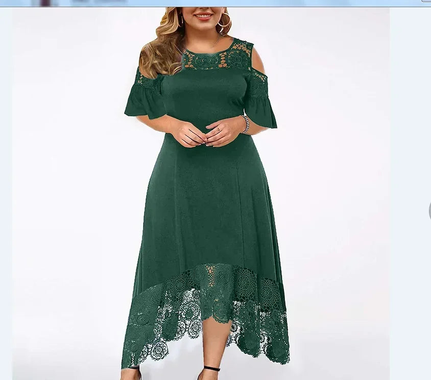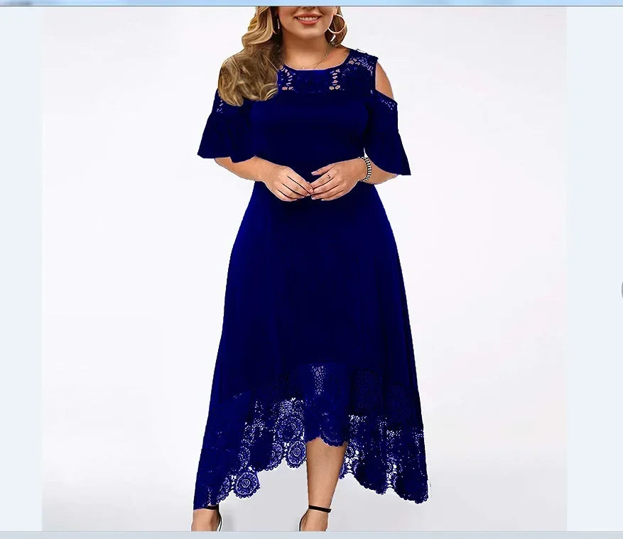 2025 Women's Lace Stitching Ruffle Short-Sleeved Strapless Dress Elegant Ladies' Summer Evening Club Party Dresses Woman Vestido
