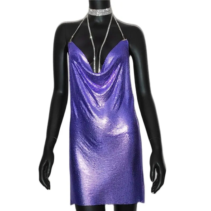 Jaded London purple metal dress Hyper wind low cut sexy halter backpack hip dress advanced sense mini dress