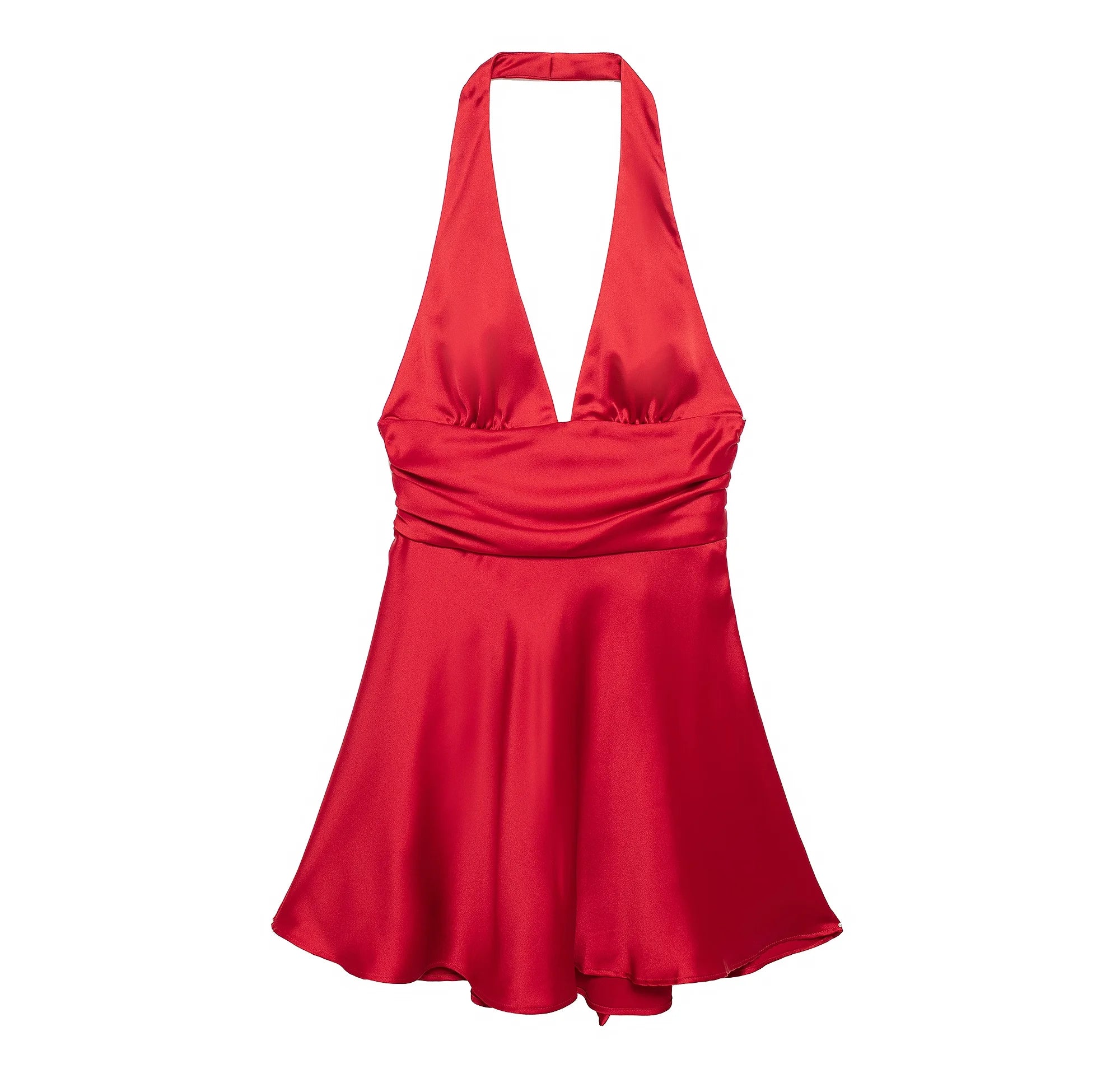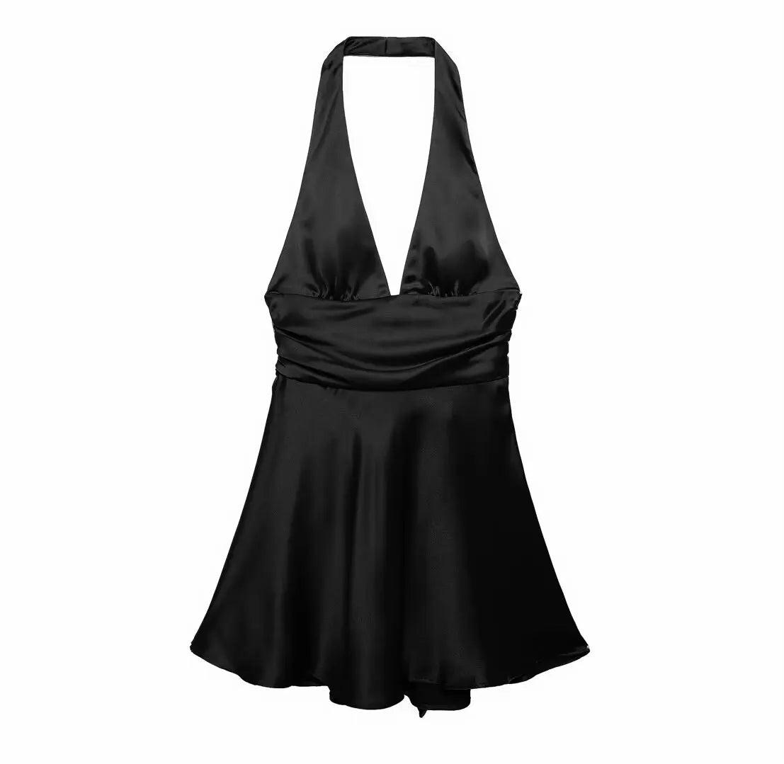 TRAFZA Sexy Solid Mini Women Dress Fashion 2024 Summer Satin Halter Bow Tie Dress Elegant Female Dress Beach Holiday Party Dress