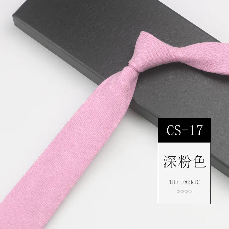 • Classic 6cm Solid Navy Brown Neckties For Men Narrow Soft Cotton Neck Ties Casual White Tie Club Party Shirt Accessories Cravat