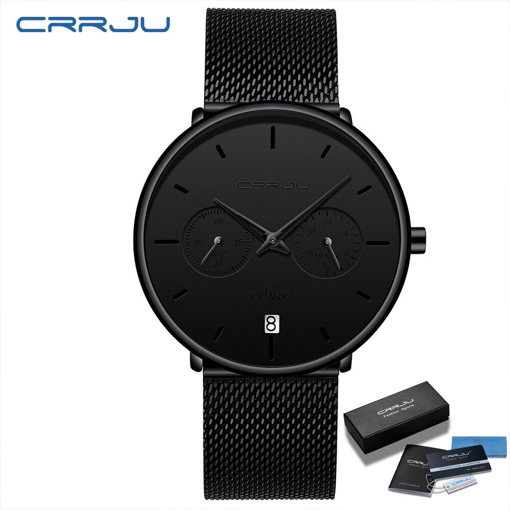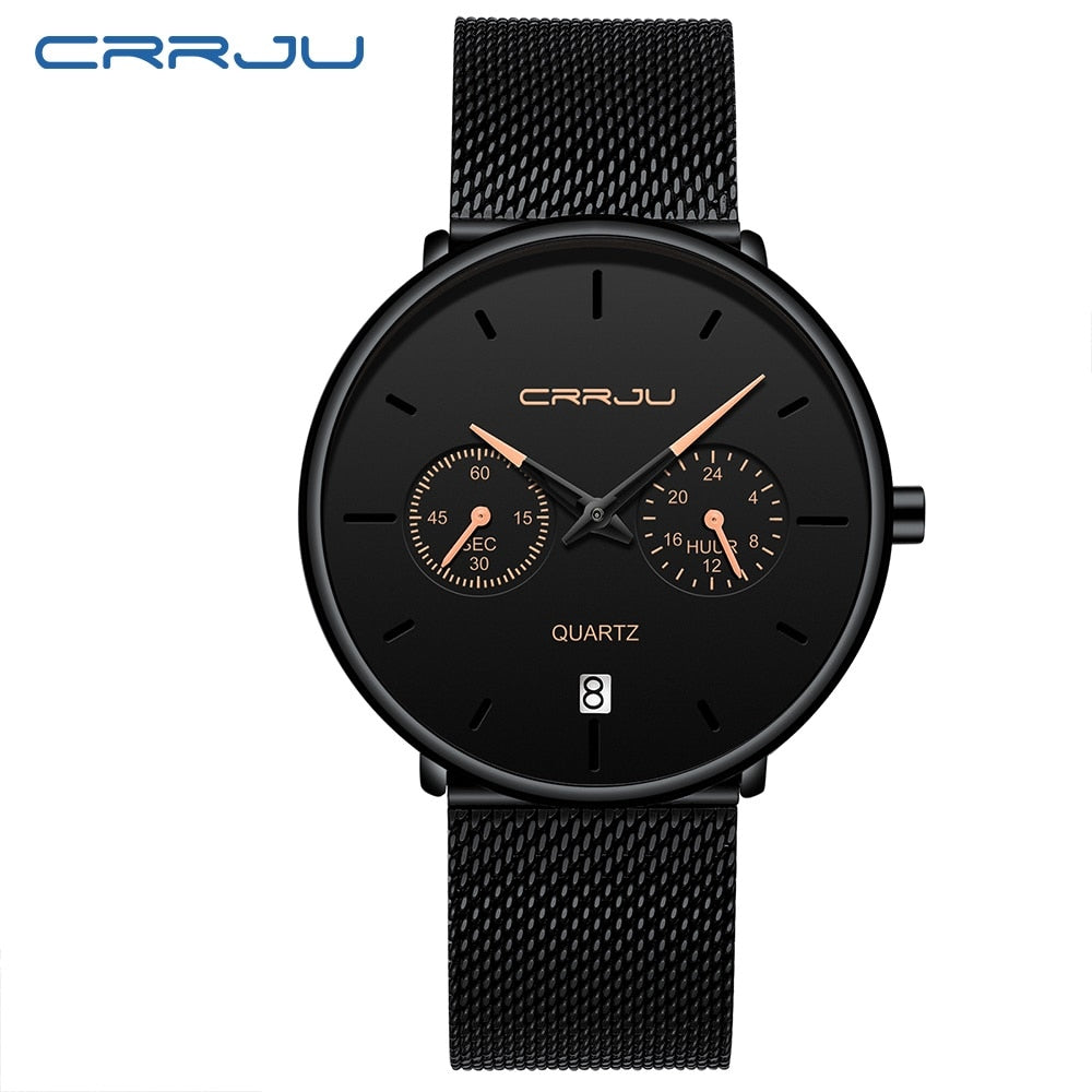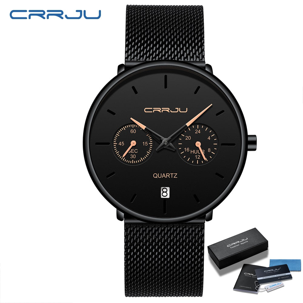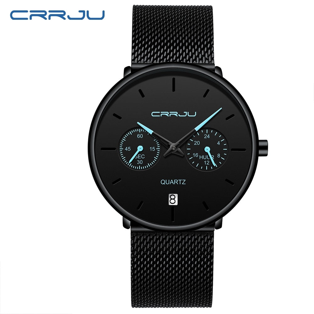 Mens Watches CRRJU Full Steel Casual Waterproof Watch for Man Sport Quartz Watch Men's Dress Calendar Watch Relogio Masculino