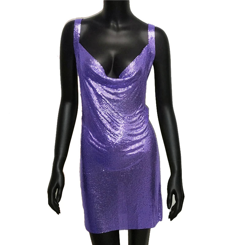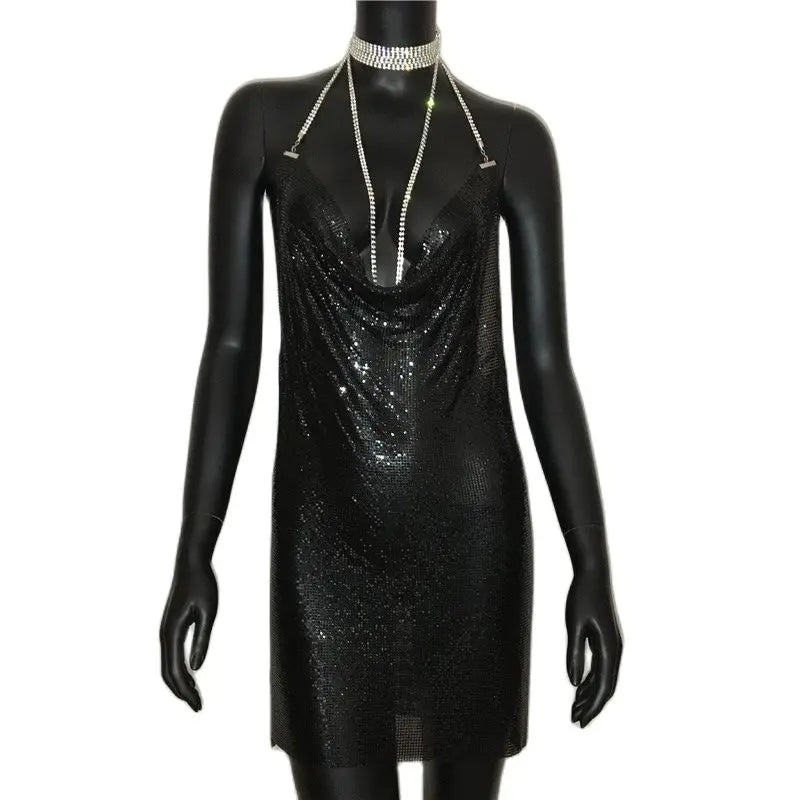 • Sexy backless metal sequin mini summer dress women clothing sparkly nightclub party dress womens luxury evening dresses vestidos