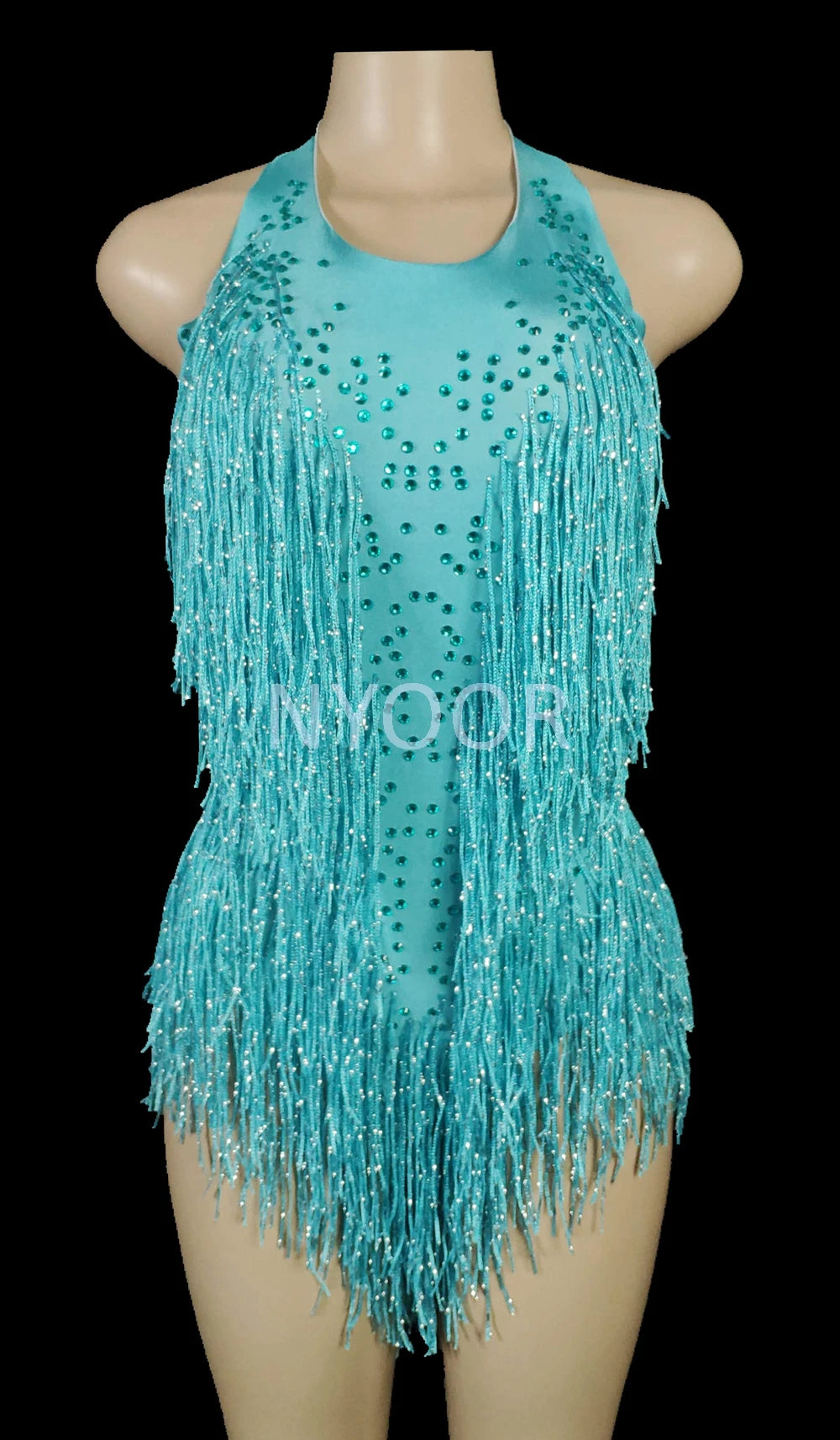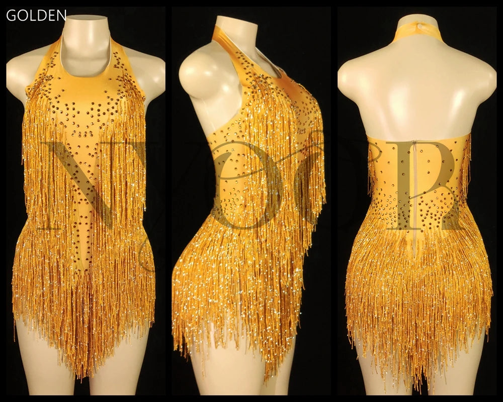 Sparkly Rhinestones Fringes Leotard Women Nightclub Party Outfit Dance Costume One-piece Stage Wear Sexy Performance Bodysuit