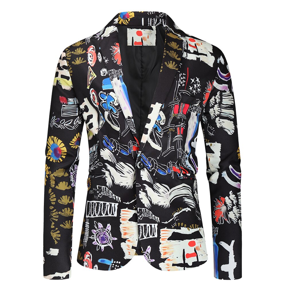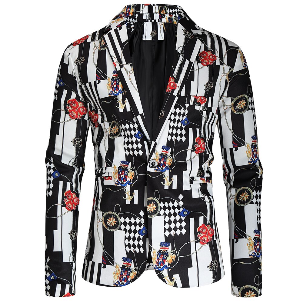 2022 New Luxury Gold Print Blazer Slim Fit Men Party Wedding Dress Black Suit Jacket