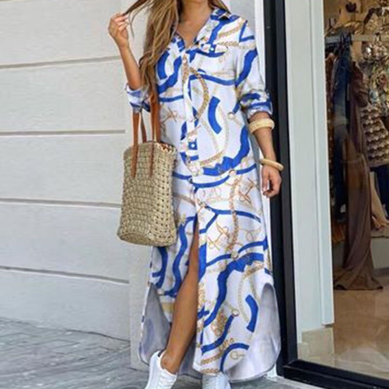 Women Long Sleeve Shirt Dress Summer Casual Boho Printed Dresses Fashion Single Breasted Button Party Female Maxi Dress Vestidos
