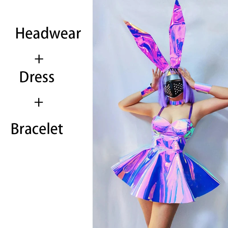 Halloween New Purple Laser Dress Animal Headdress Women's Ball Dress Bar Nightclub Costume Stage Pole Dance Festival Costume