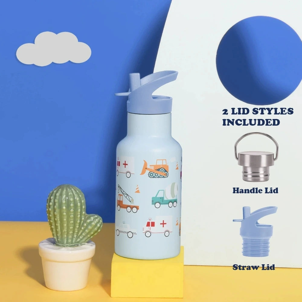 New 350Ml Insulated Cup Double-Layer Stainless Steel Sports Kettle Portable Outdoor Double Lid Handle With Straw Insulated Cup