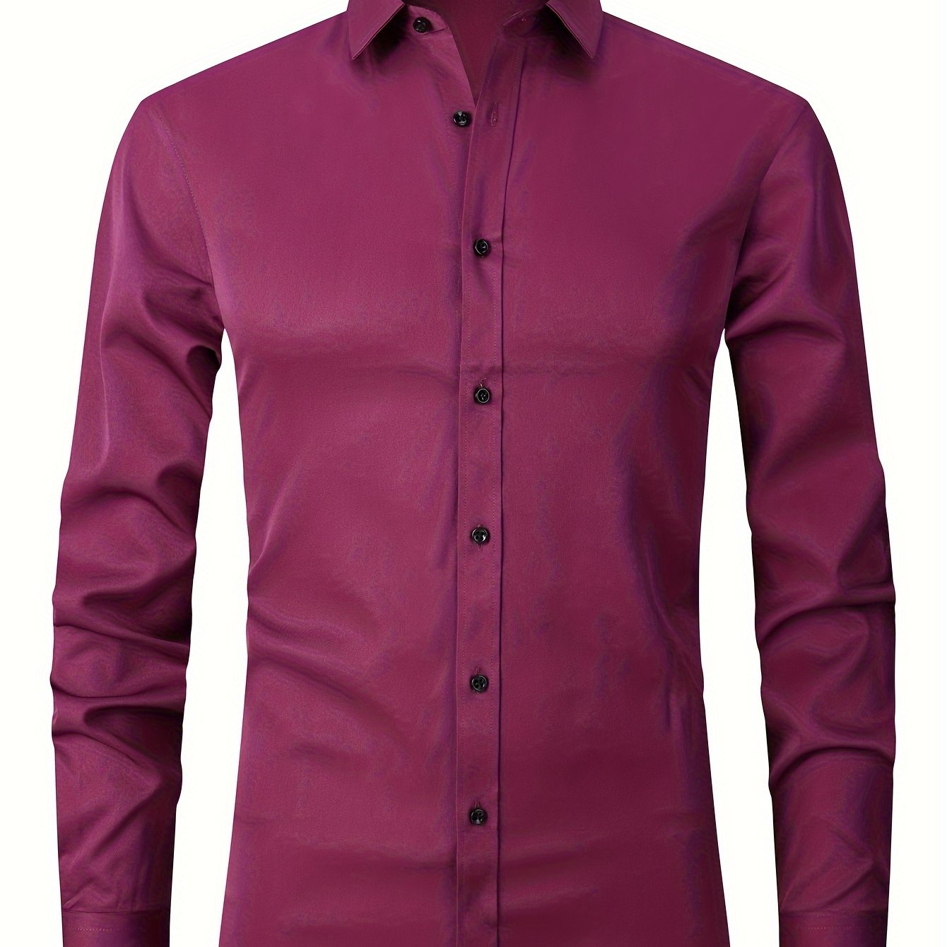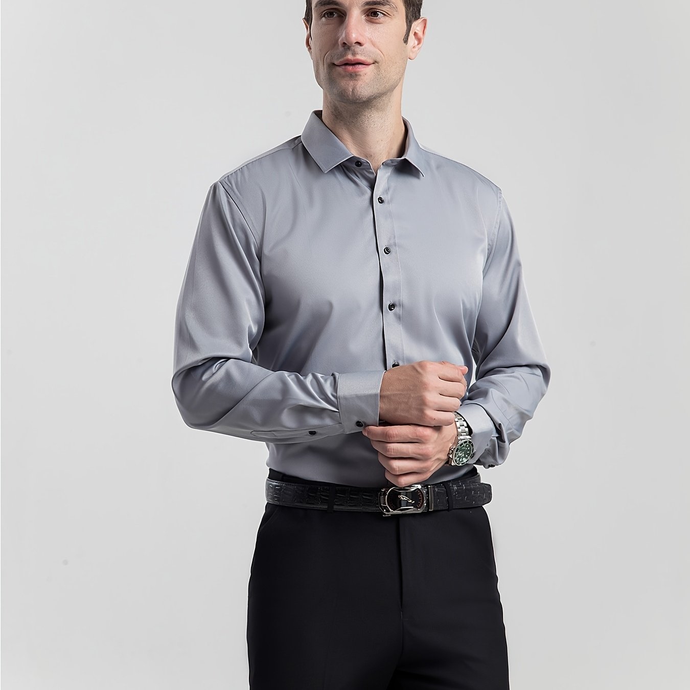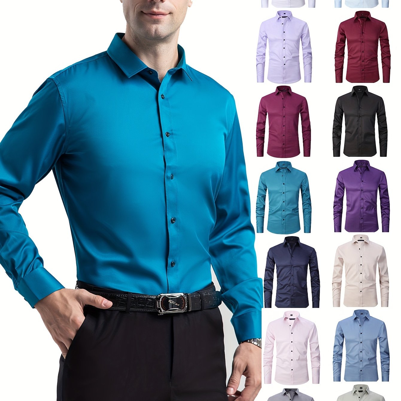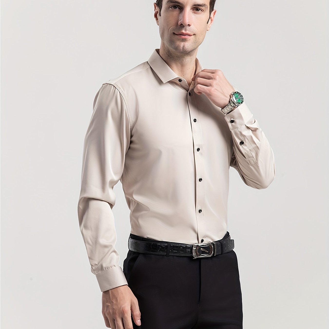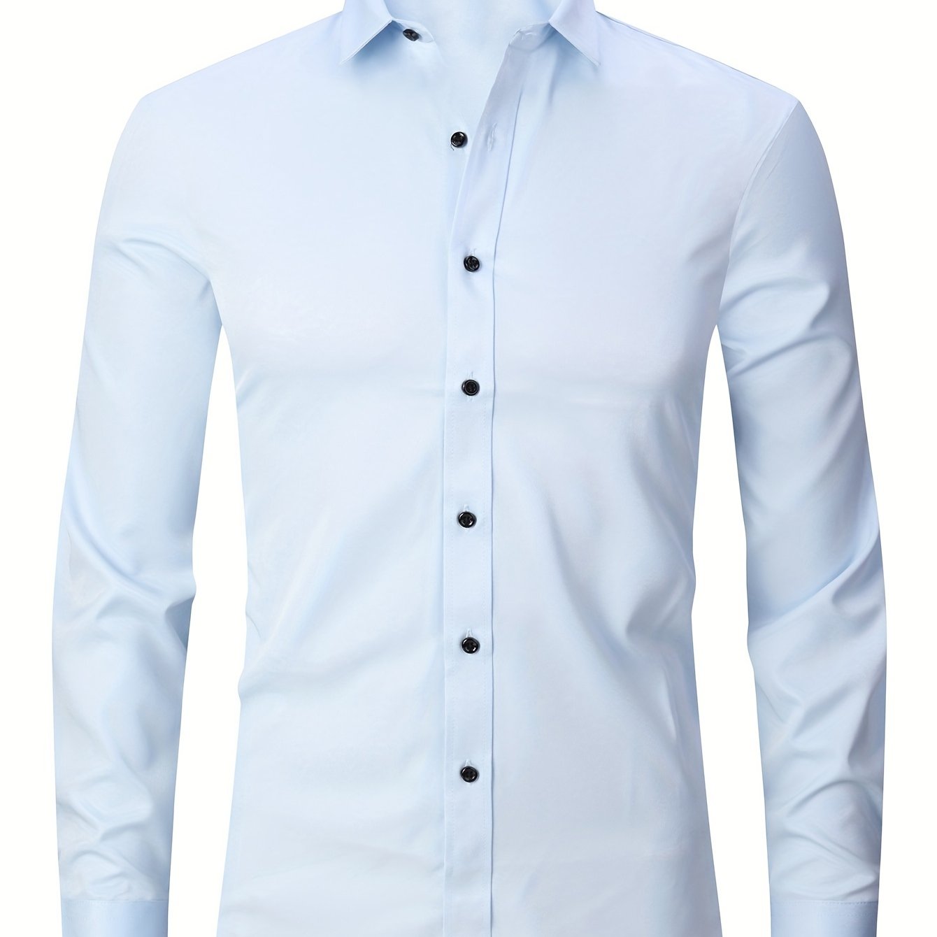 Men'S Slim-Fit Stretch Formal Shirt, Light Business Lapel Long Sleeve Shirt, Men'S Business Shirt Wrinkle-Resistant and Durable Solid Color Formal Long Sleeve Shirt with Buttons and Pockets Suitable for Work, Commuting, Datin