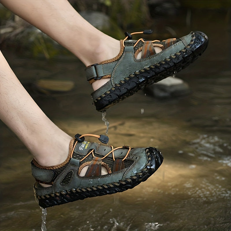 Men's Trendy Breathable Mesh Sandals With Adjustable Draw String, Casual Outdoor Walking Shoes, Assorted Colors