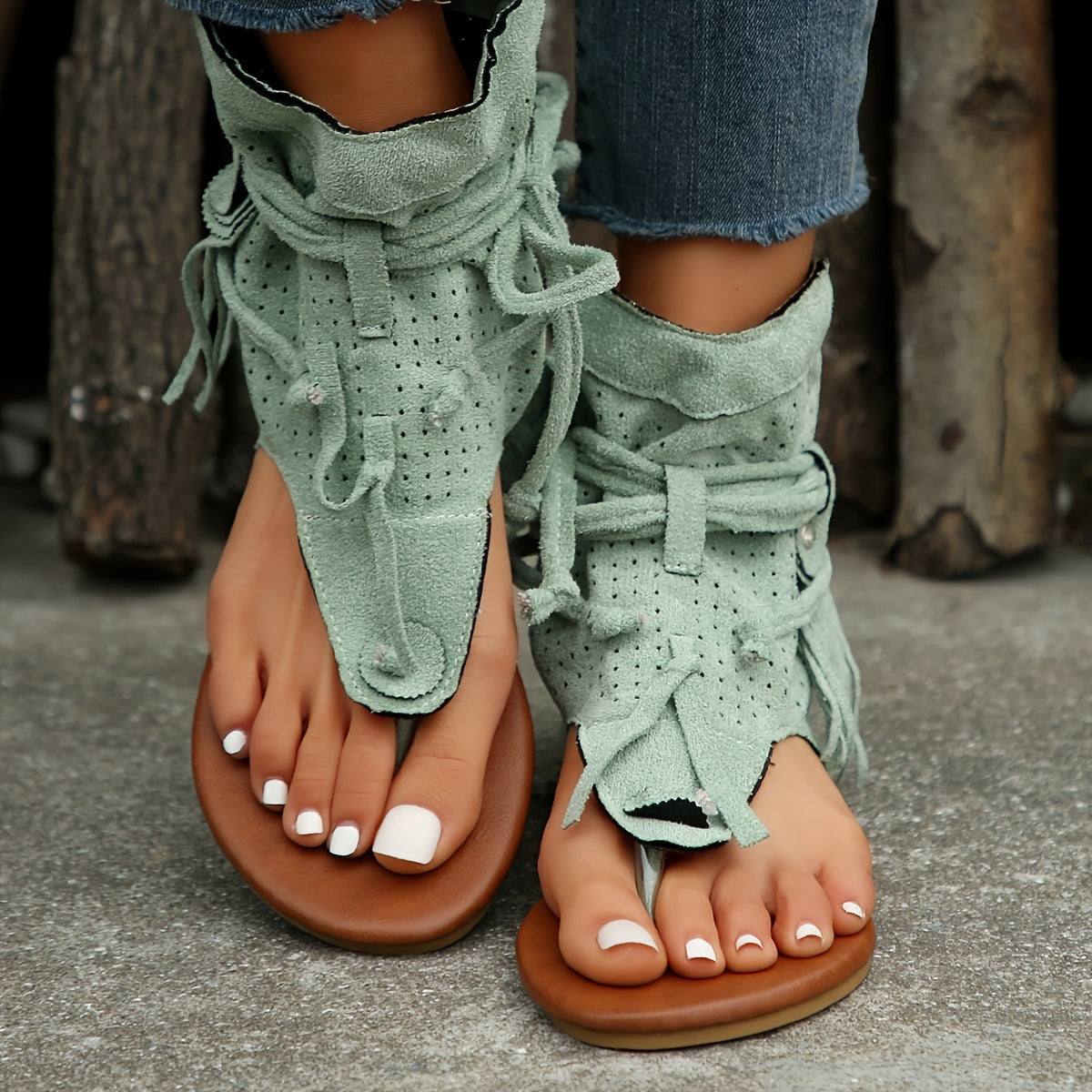 Cross-border Cool Boots European and American Hot Selling Retro Comfortable Flat Bottom Tassel Hollow Toe Women's Sandals