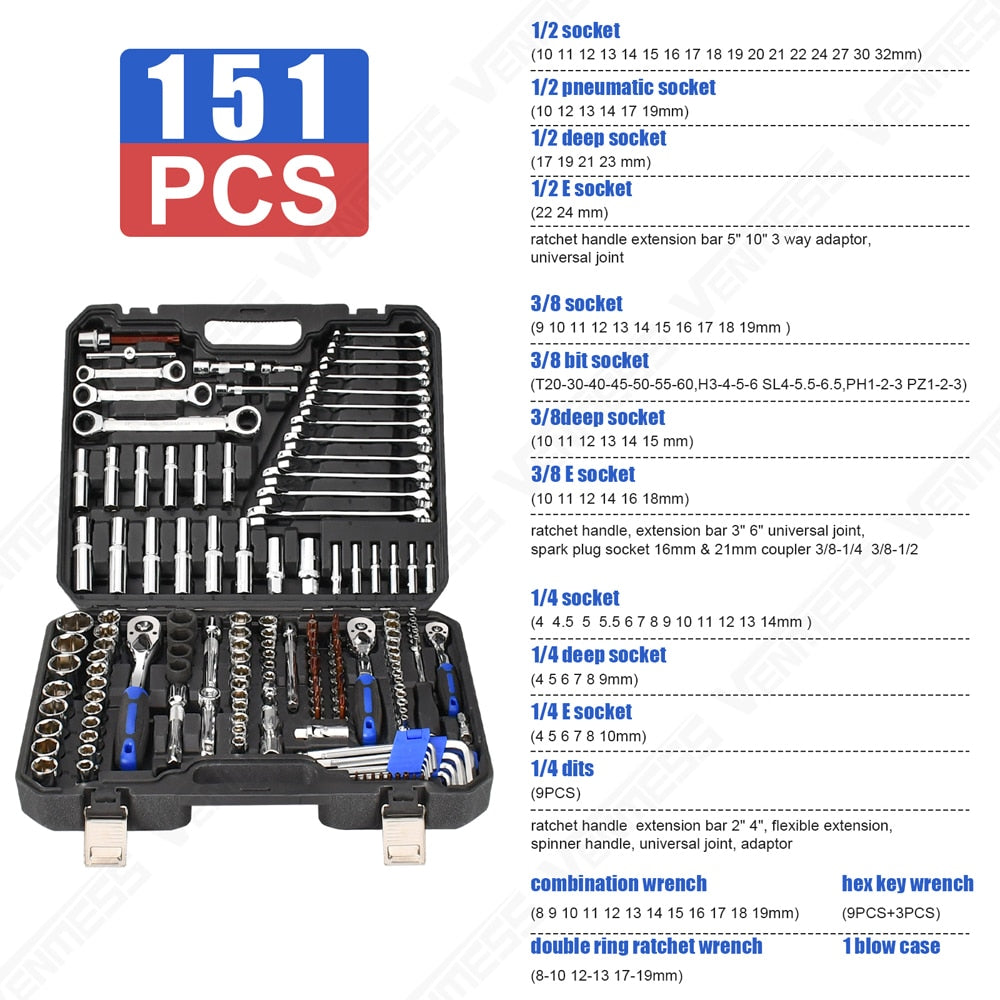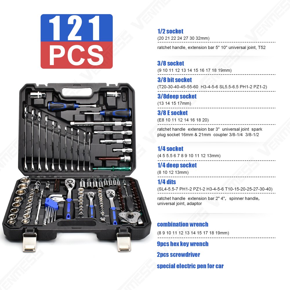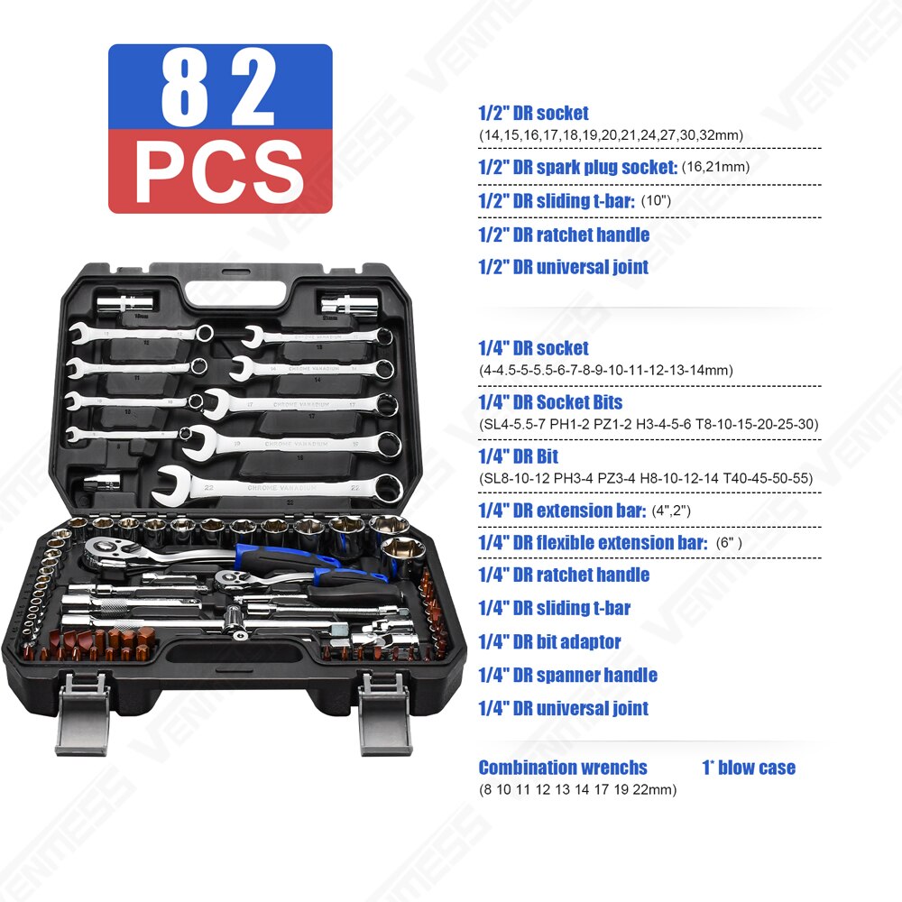 SPECIFICATIONSis_customized: Nofeature 9: Socket Wrench Ratchetfeature 8: Mechanics Tools Kit and Socket Setfeature 7: with durable carrying casefeature 6: Mechanics Tool Setfeature 5: 72- tooth Ratchet...